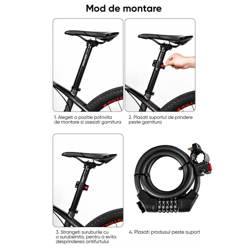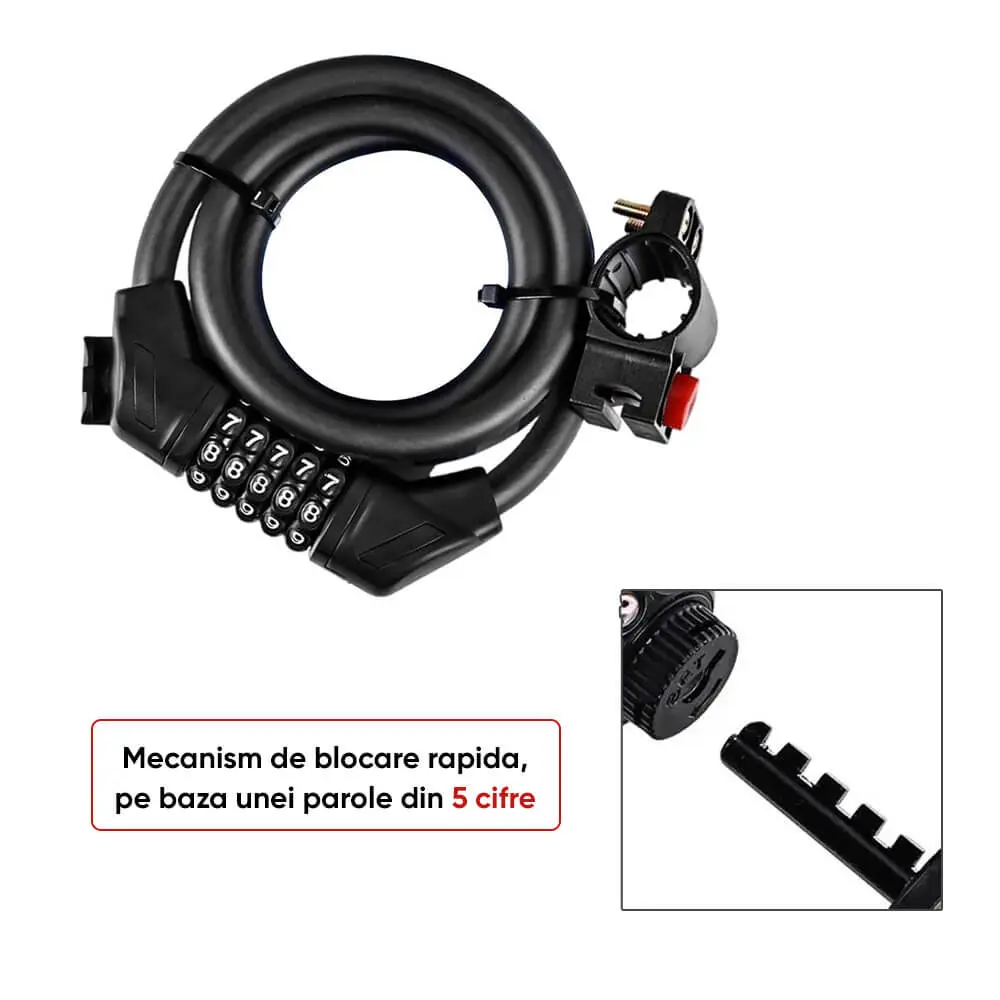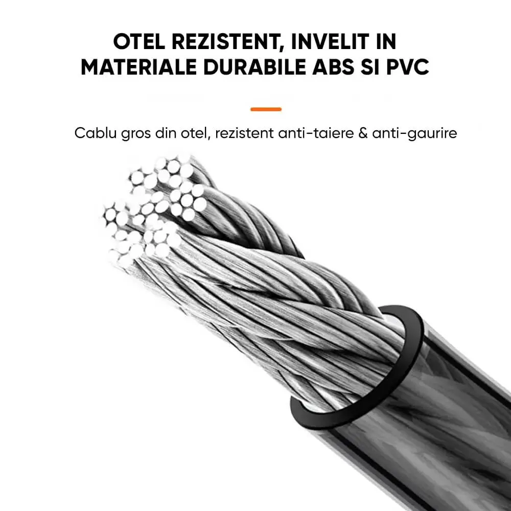 Antifurt cu cablu din otel de inalta calitate, conceput pentru a oferi protectie sigura si durabila, fiind o varianta modificata si imbunatatita.