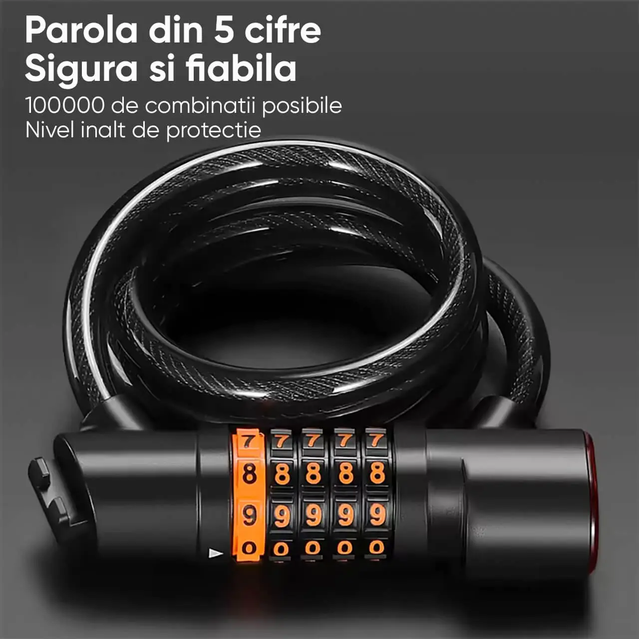 - Fabricat din cablu de otel rezistent, invelit in materiale durabile ABS si PVC, acest antifurt ofera o protectie eficienta impotriva tentativelor de furt si taiere.