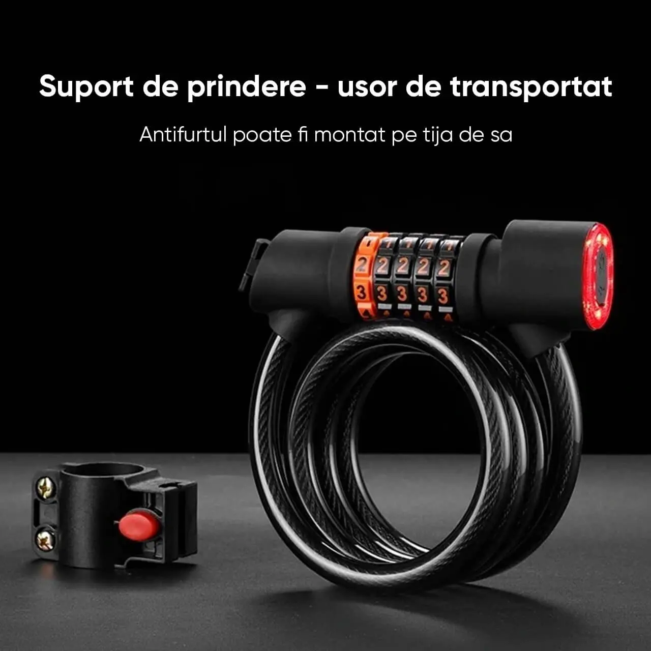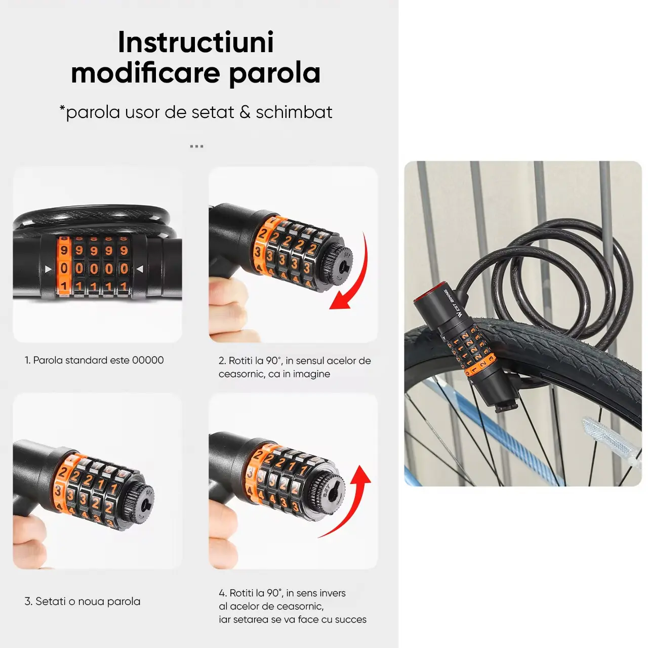 - Functii: securitate ridicata si de lunga durata, protectie antifurt, lumina stop, rezistenta la rugina, parola din 5 cifre