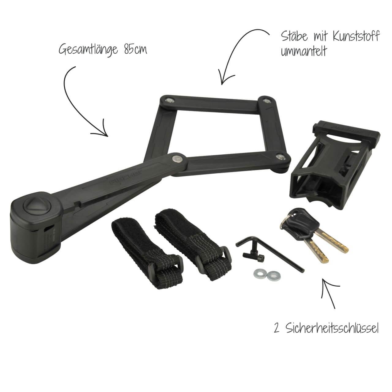 Antifurt pliabil cu suport prindere pe bicicleta, Fischer, 2 chei, 85 cm
