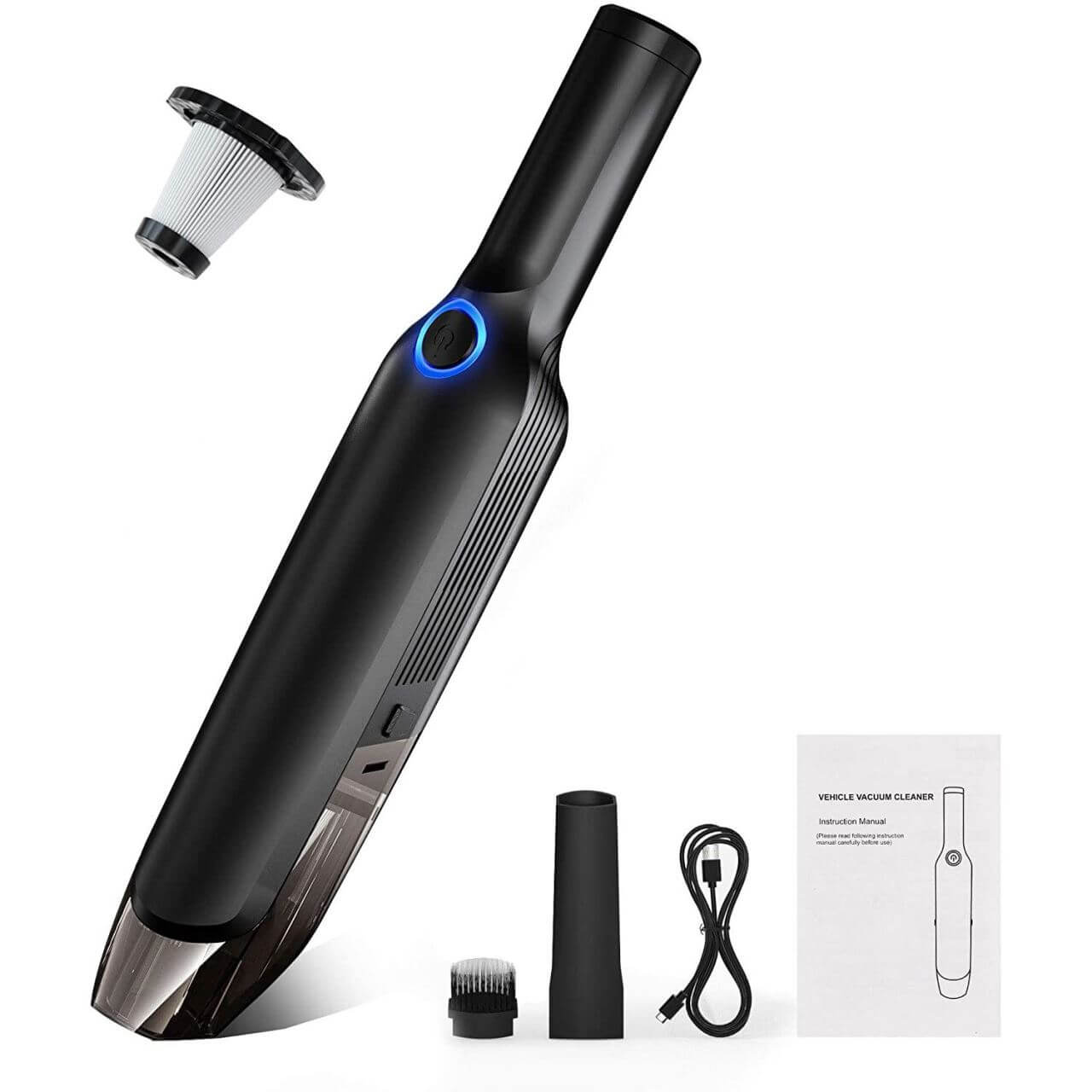 - Pachetul include: aspirator auto portabil, 2 duze de aspirație și cablu de încărcare USB. (nu este inclus adaptorul de incarcare la retea)