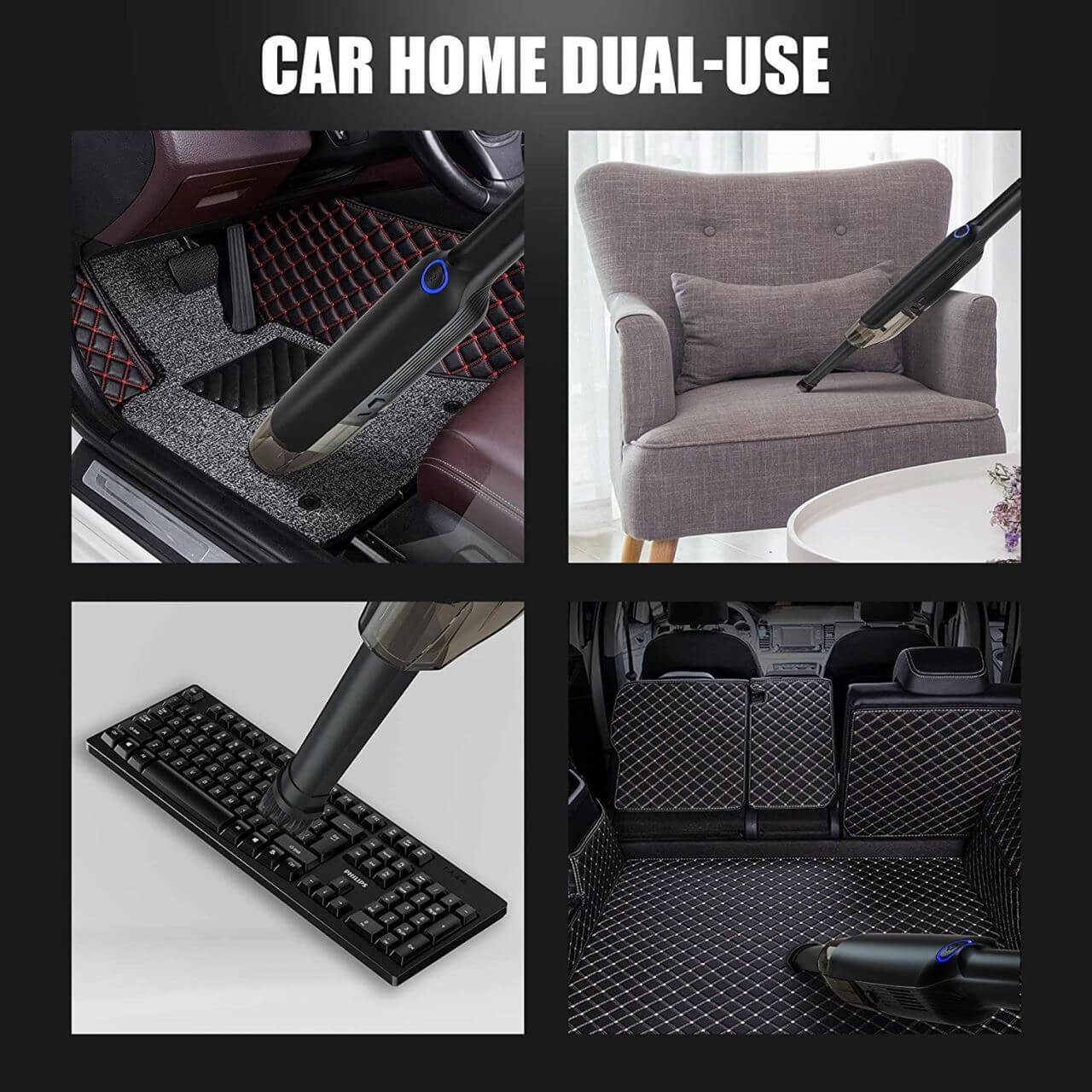 - Ideal pentru curățarea interiorului auto dar și a suprafețelor multiple cum ar fi tastatura calculatorului și poate elimina praful cu ușurința de pe birouri, bucătării, băi, colțuri greu accesibile, habitaclu sau suprafețe mai dificile de curățat.