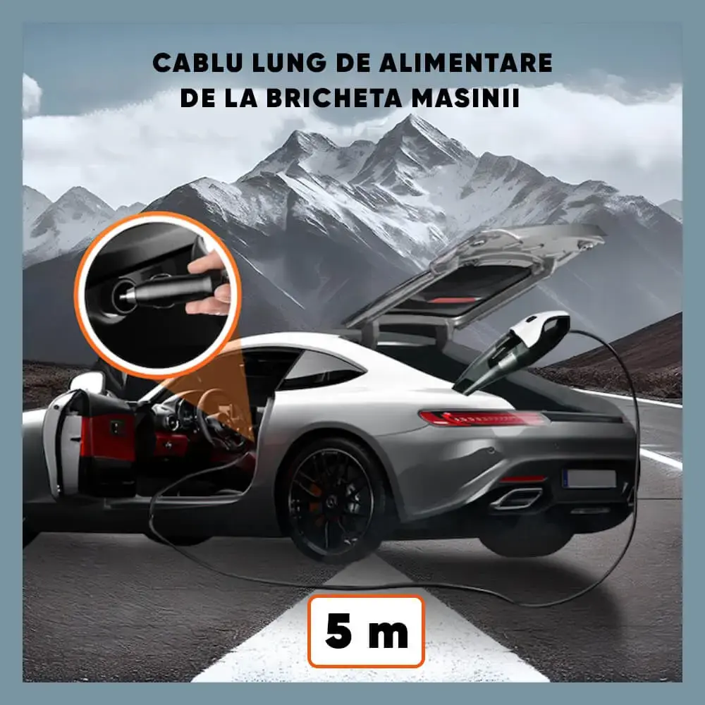 - Aspiratorul dispune de un cablu de alimentare lung, care va permite sa ajungeti chiar si la portbagajul masinii, asigurand o curatare eficienta in orice colt.