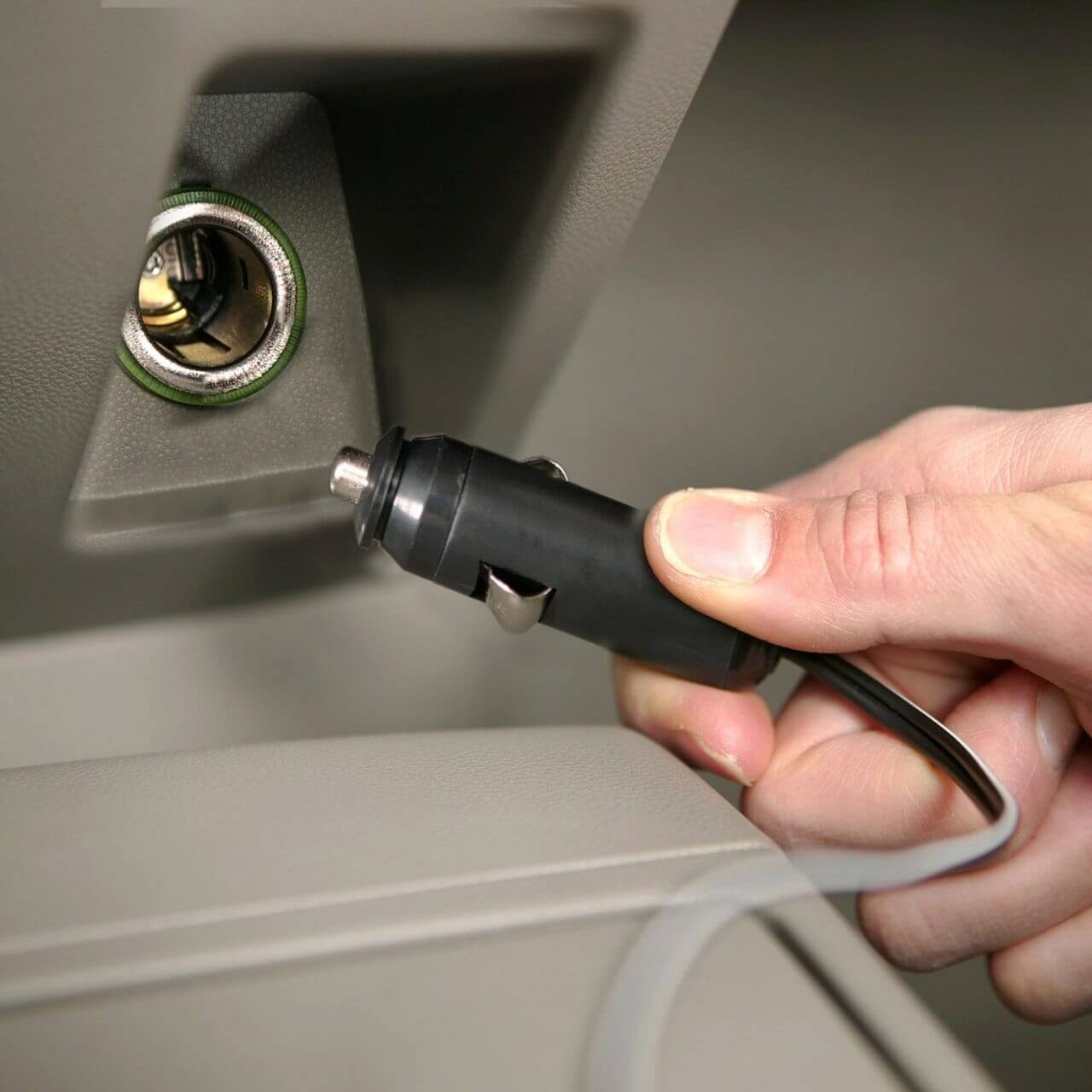 - Se conecteaza la priza de bricheta de 12 V a masinii si se apasa butonul de pornire.
