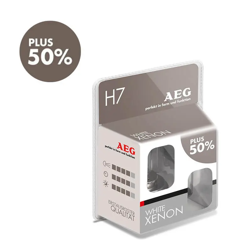 Becuri auto far AEG, White Xenon Plus +50% H7, 55W, 12V, 2 buc