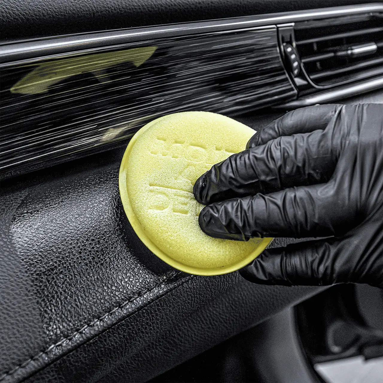- Fabricat din spuma moale de inalta calitate, acest aplicator este ideal pentru utilizare pe suprafete vopsite, cauciuc, plastic, vinilin si piele, asigurand rezultate profesionale fara zgarieturi.