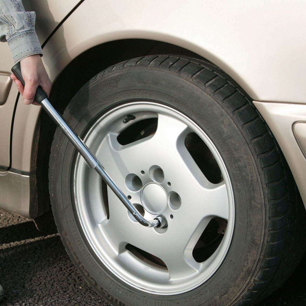 - Cheie tubulara de roti, telescopica, tip "L", cu cap reversibil de doua marimi: 17 si 19 mm.