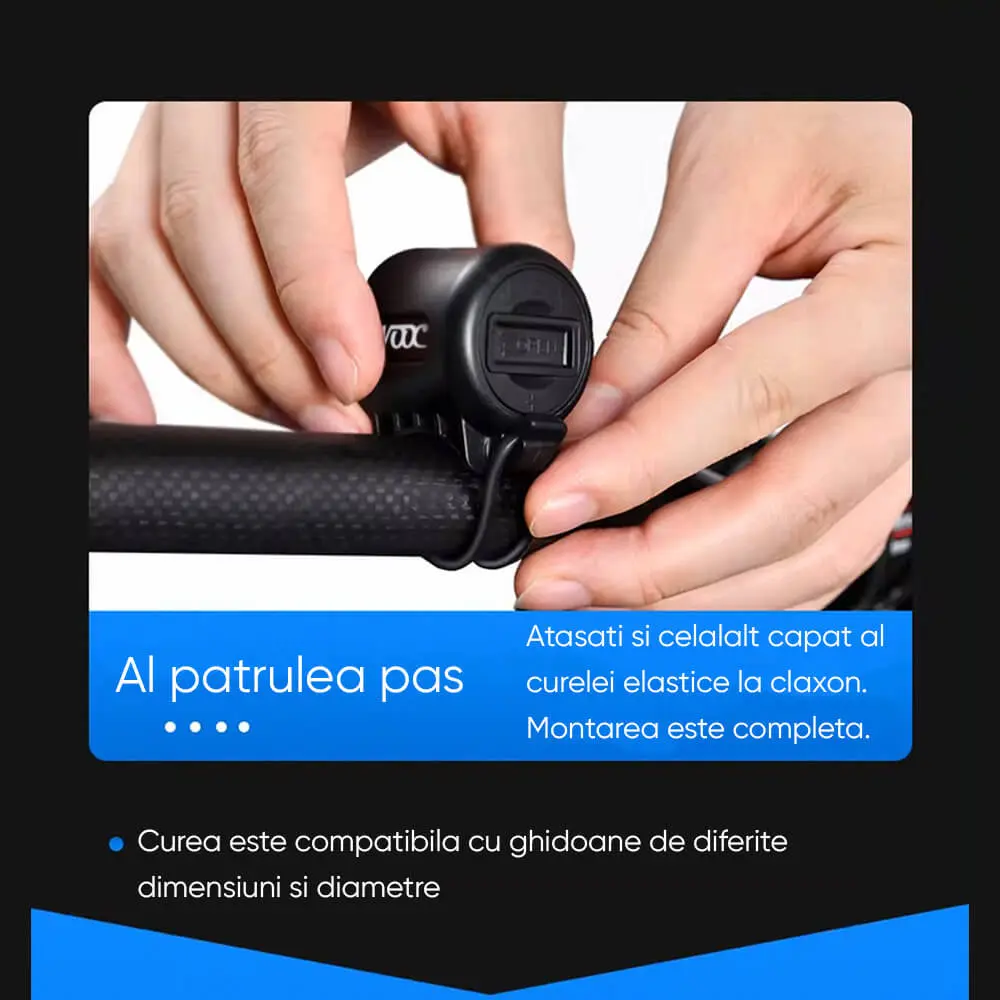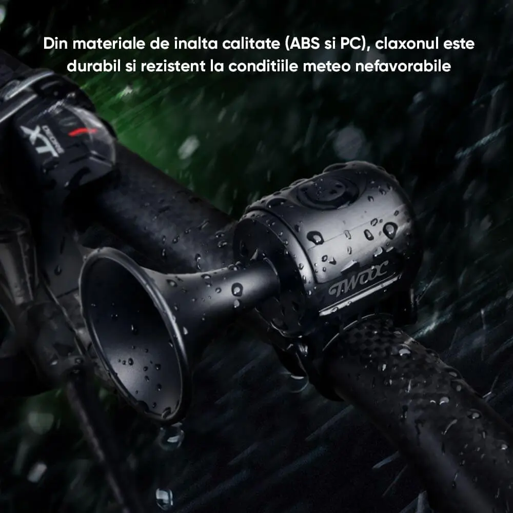 - Compact si usor, claxonul este perfect pentru MTB, biciclete de munte, biciclete de sosea, scutere electrice, etc.
