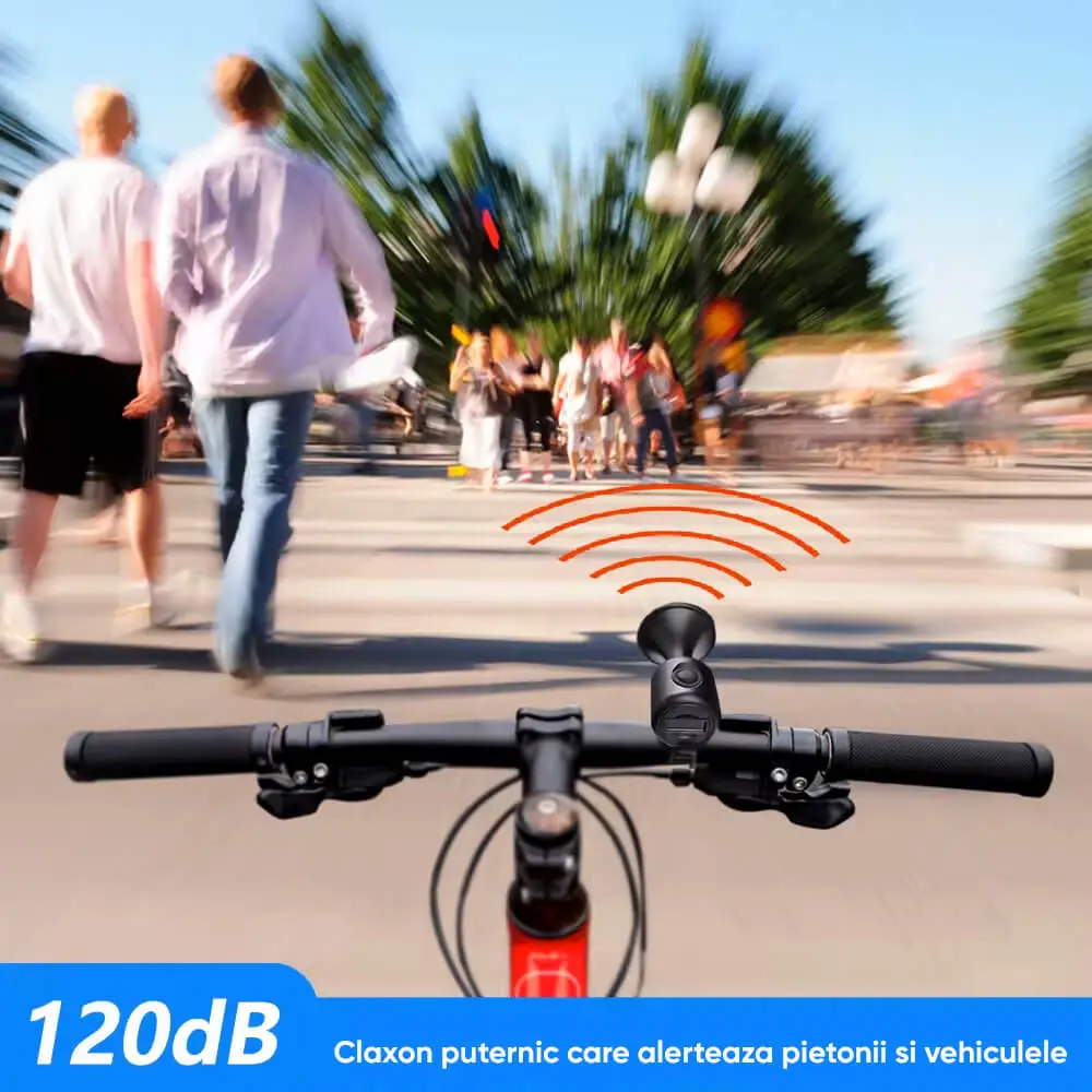 Claxonul electric puternic de 120dB este un accesoriu esential pentru orice bicicleta, trotineta sau scuter. Acesta avertizeaza pietonii si vehiculele de prezenta dumneavoastra in trafic, facand calatoria mai sigura.