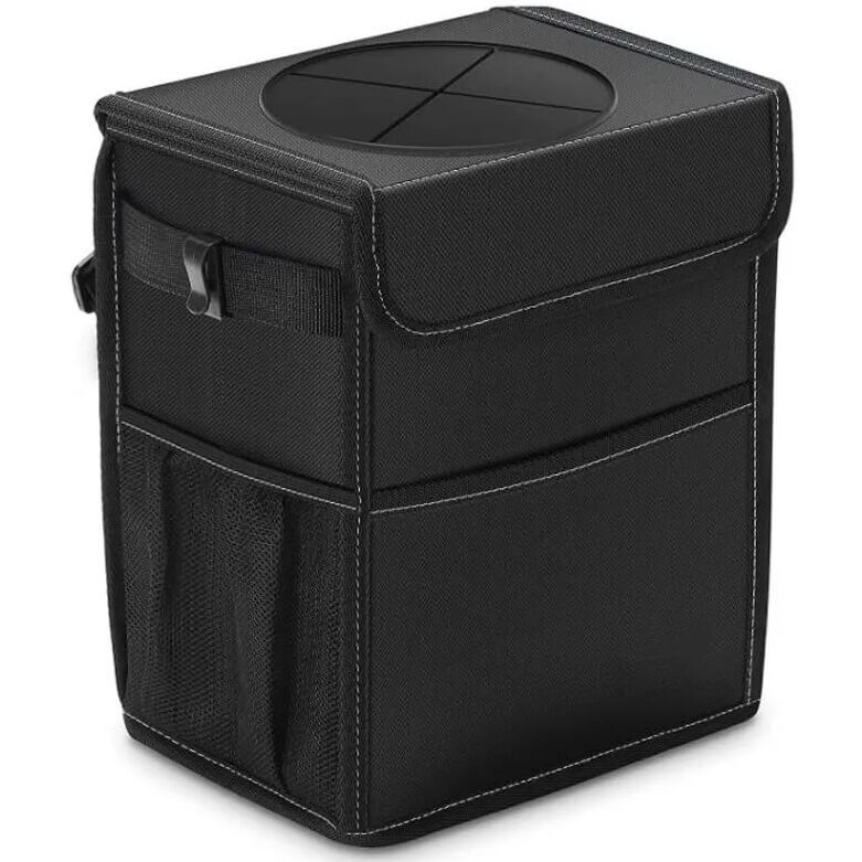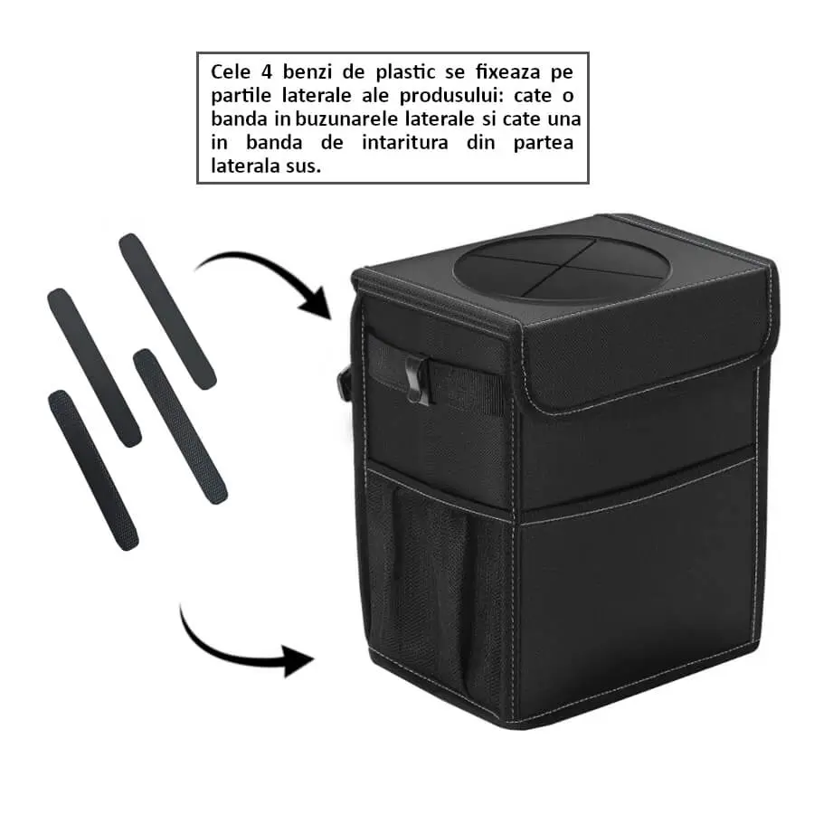 Cos gunoi auto cu capac, 25x13x30 cm, buzunare depozitare, organizator auto, poliester, Roll Fast, negru