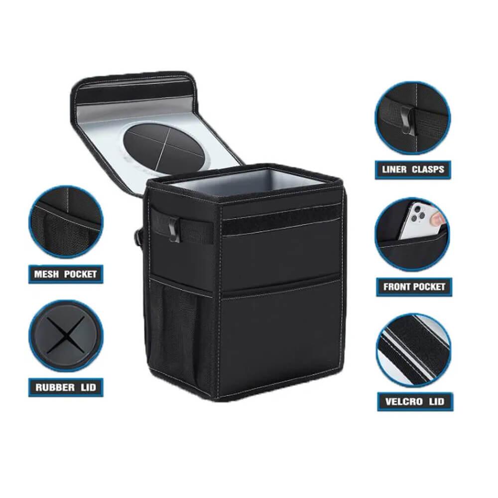 - Interiorul cosului de gunoi auto are o captuseala impermeabila, durabila si rezistenta.