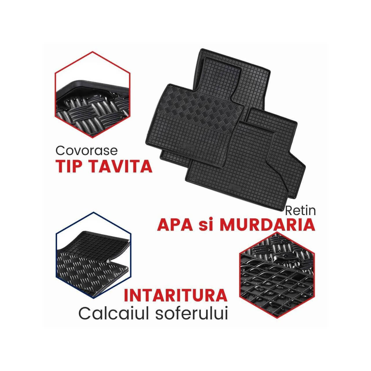 Covorasul soferului e cel mai folosit! Intaritura suplimentara ii ofera protectia necesara si rezistenta in timp.