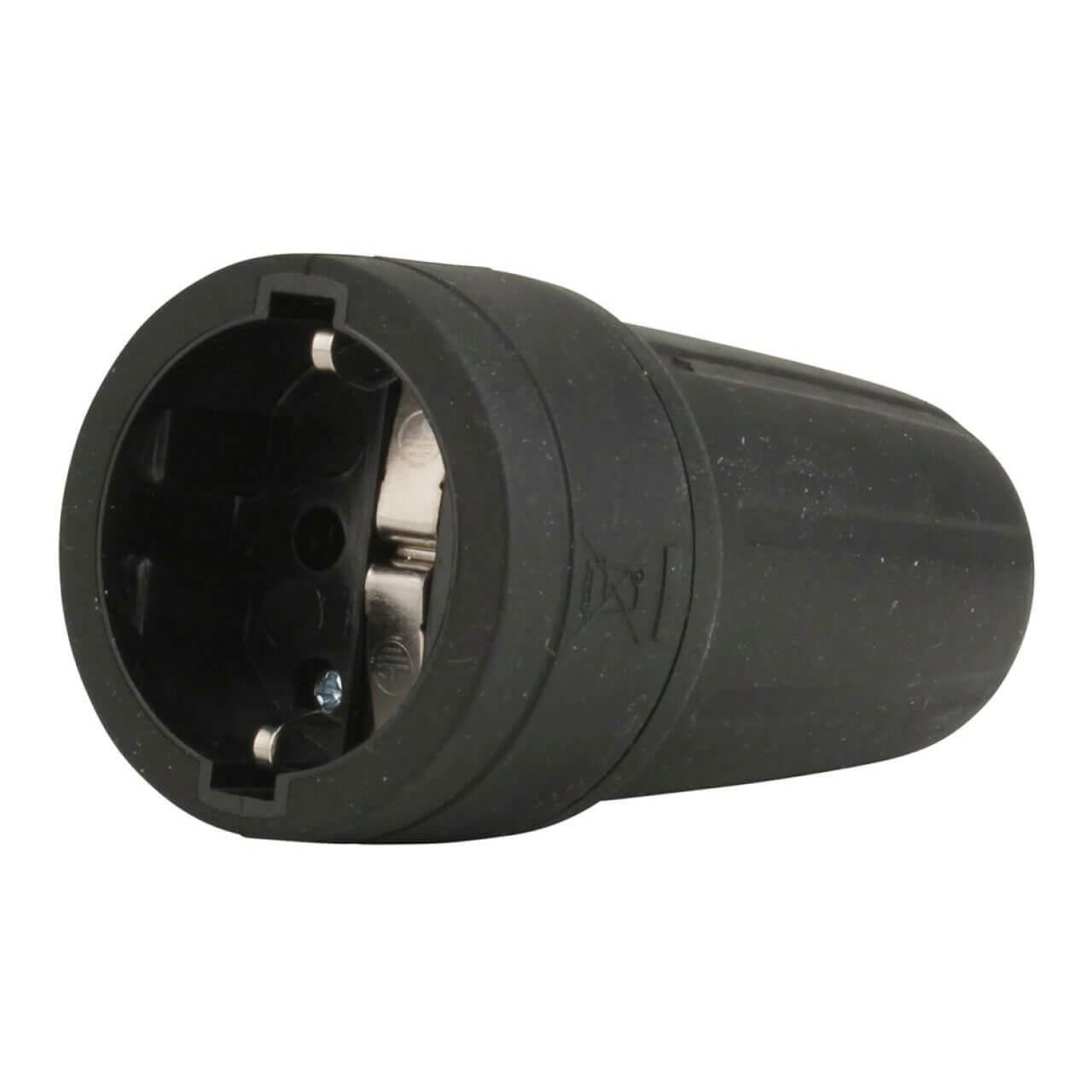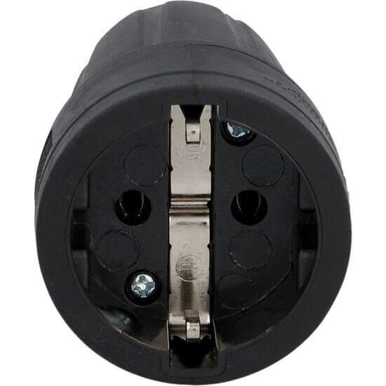 Cupla cu impamantare pentru priza Schuko cu intrare centrala a cablului si protectie la flambaj.