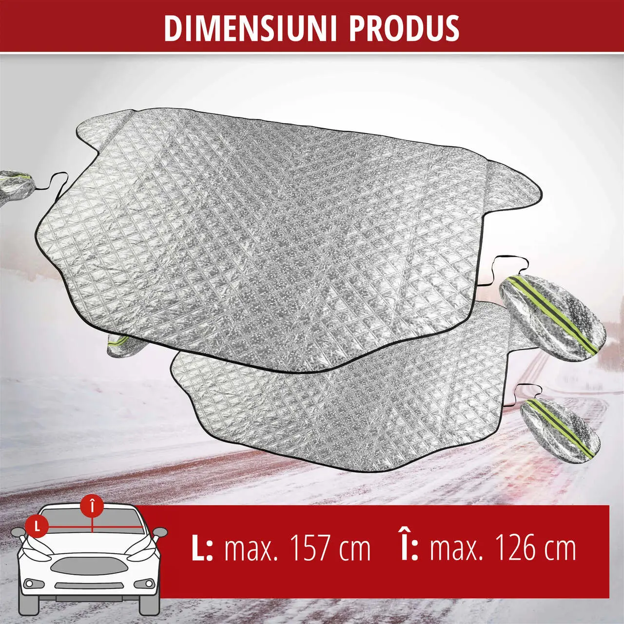Husa protectie parbriz, vara/iarna, 157x126 cm, bariera termica impotriva razelor solare/inghetului, buzunare oglinzi cu benzi reflectorizante, Walser