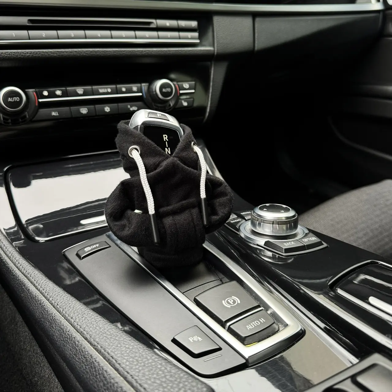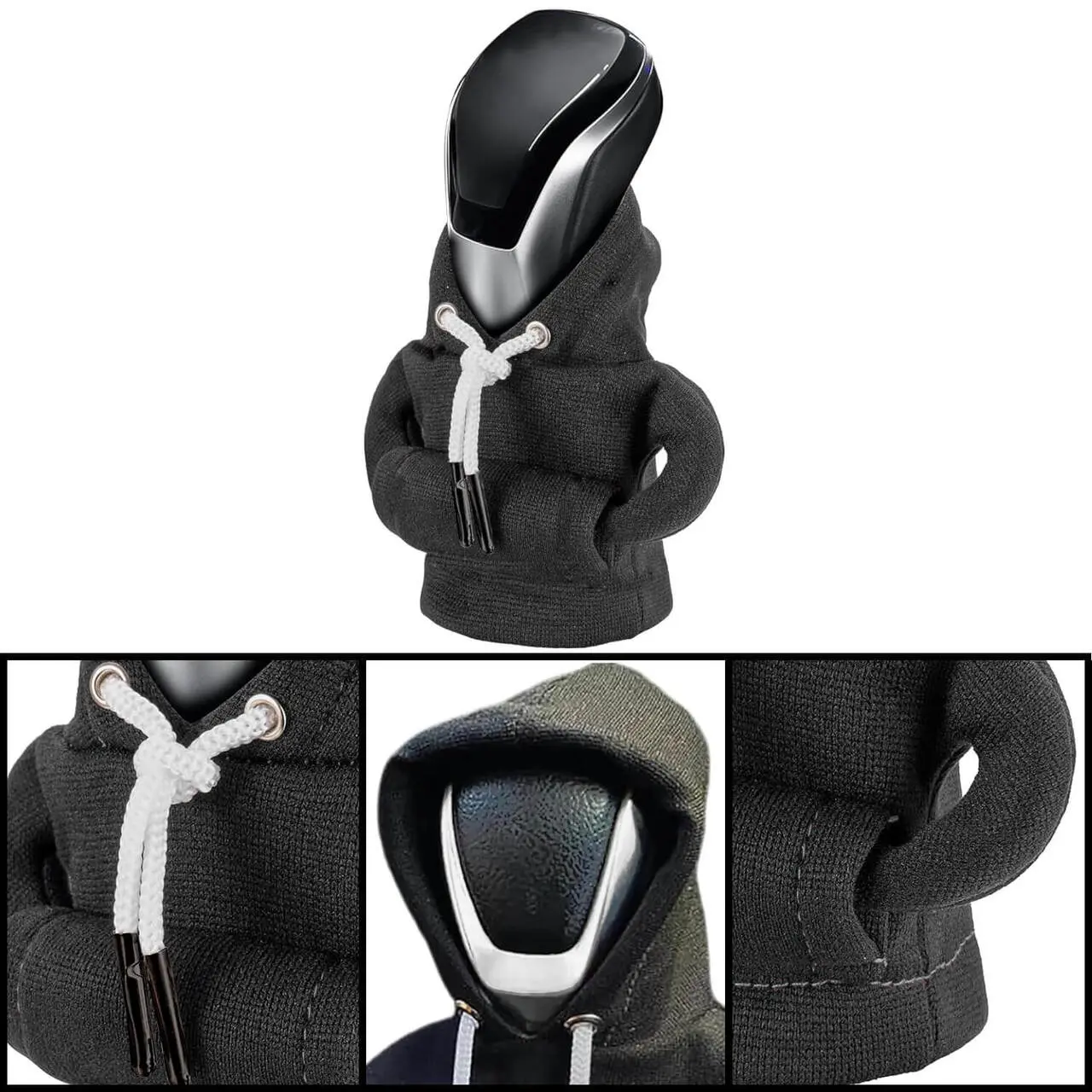 Husa schimbator viteze tip hanorac cu gluga, accesoriu auto, decoratiune masina, material textil, potrivire universala, negru