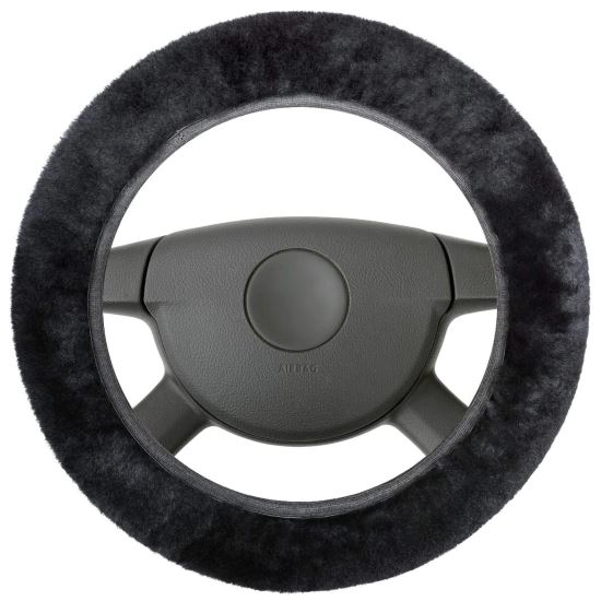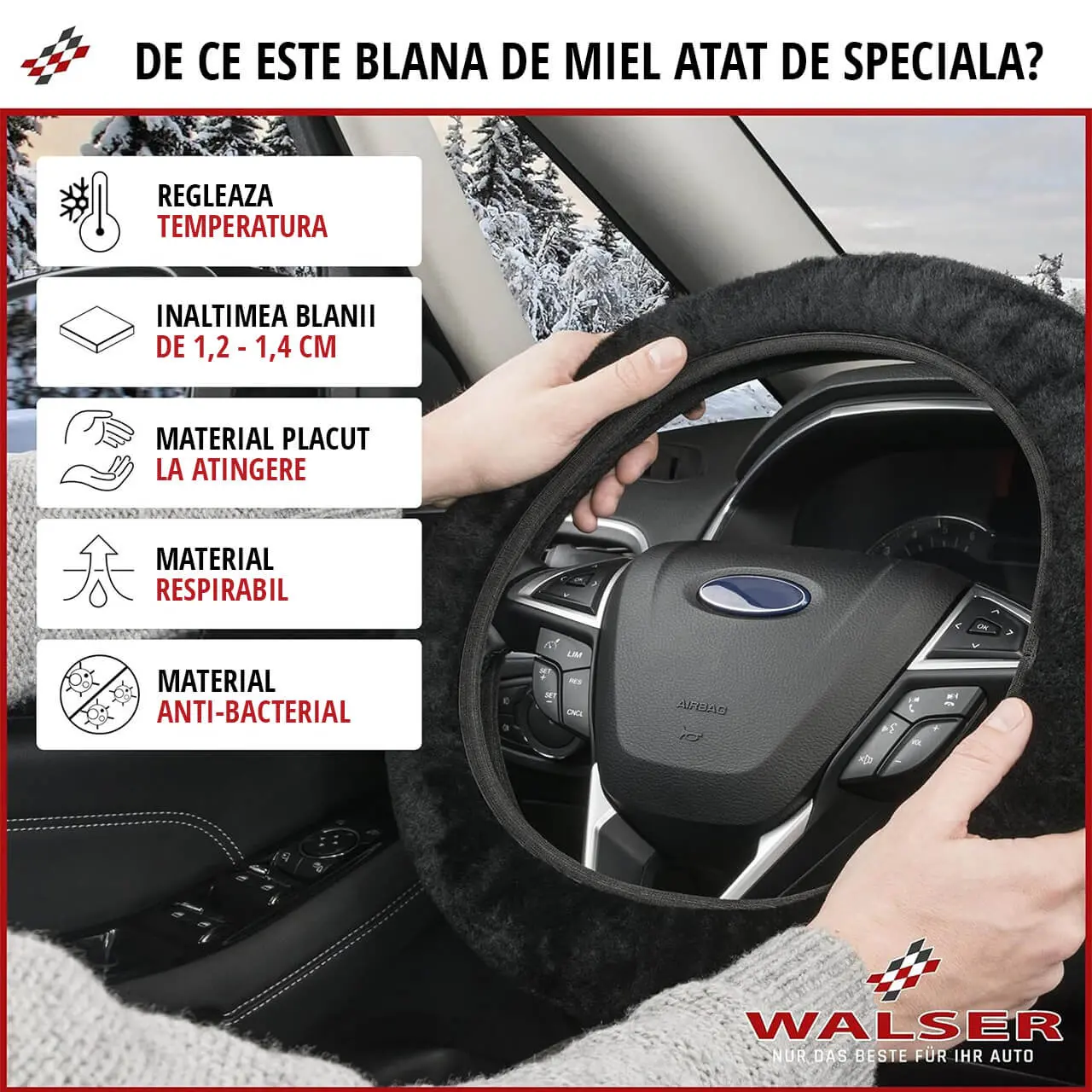 Husa volan din blana de miel, Walser, diametru 37 - 39 cm, negru