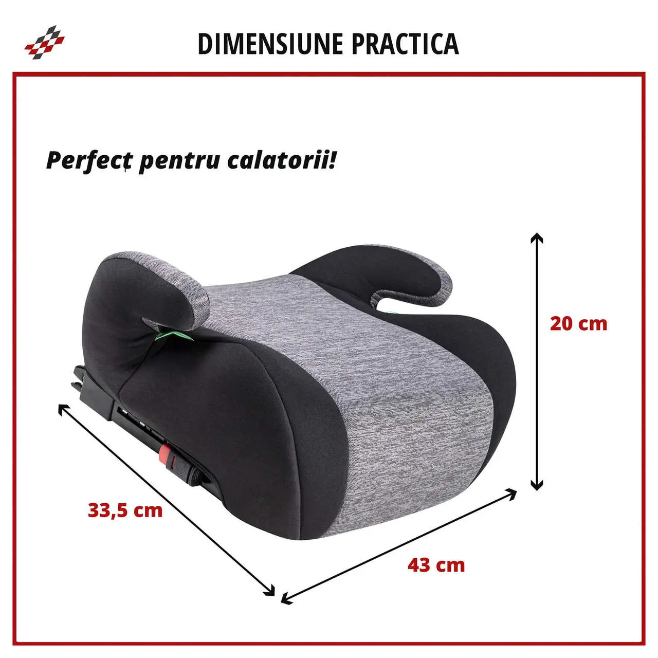 - Invelisul dur din polietilena cu densitate mare si aripile laterale extinse ale scaunului inaltator auto pentru copii asigura suport si o protectie optima.