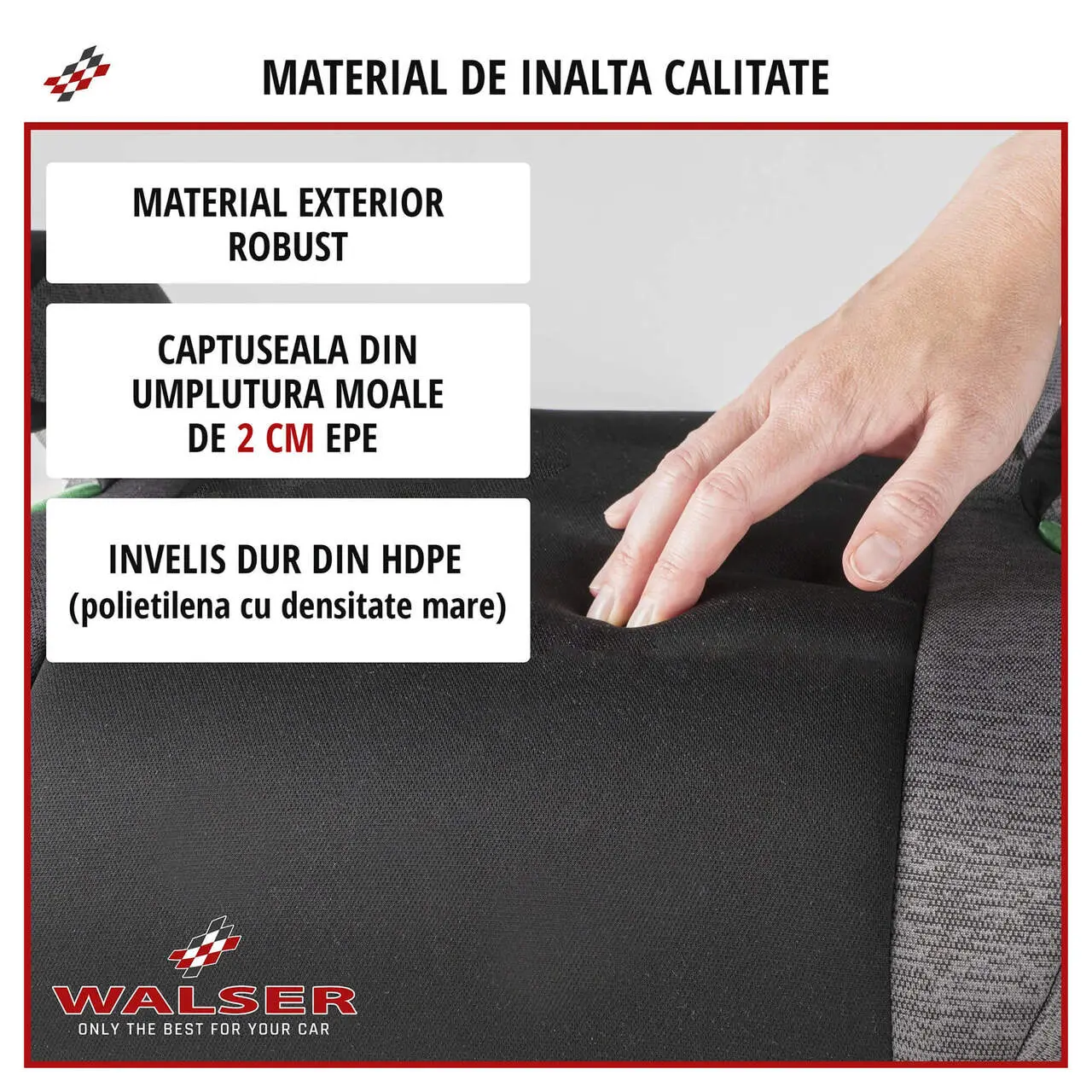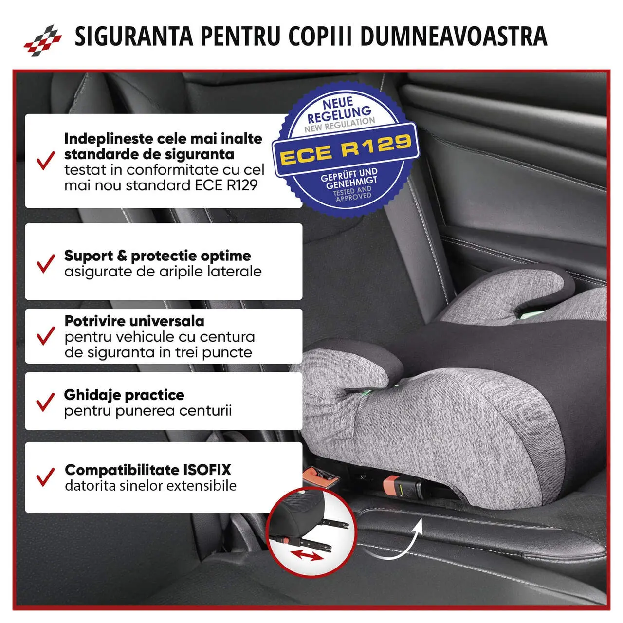 Inaltator auto cu ISOFIX pentru copil, Raffi, Walser, testat si certificat ECE R 129, i-Size, 6-12 ani, 125-150 cm, 22-36 Kg, universal, negru cu gri