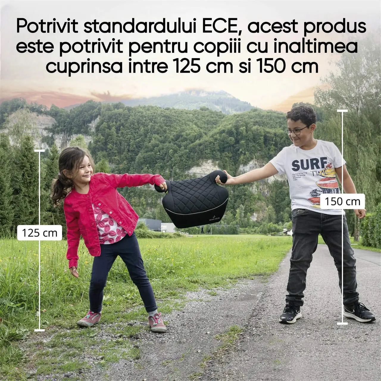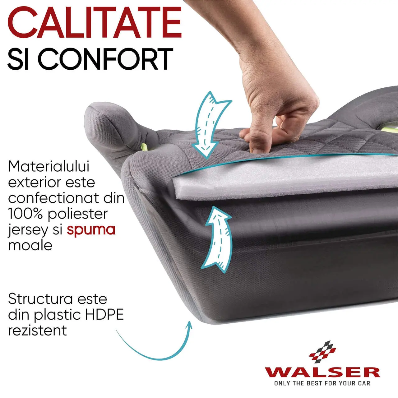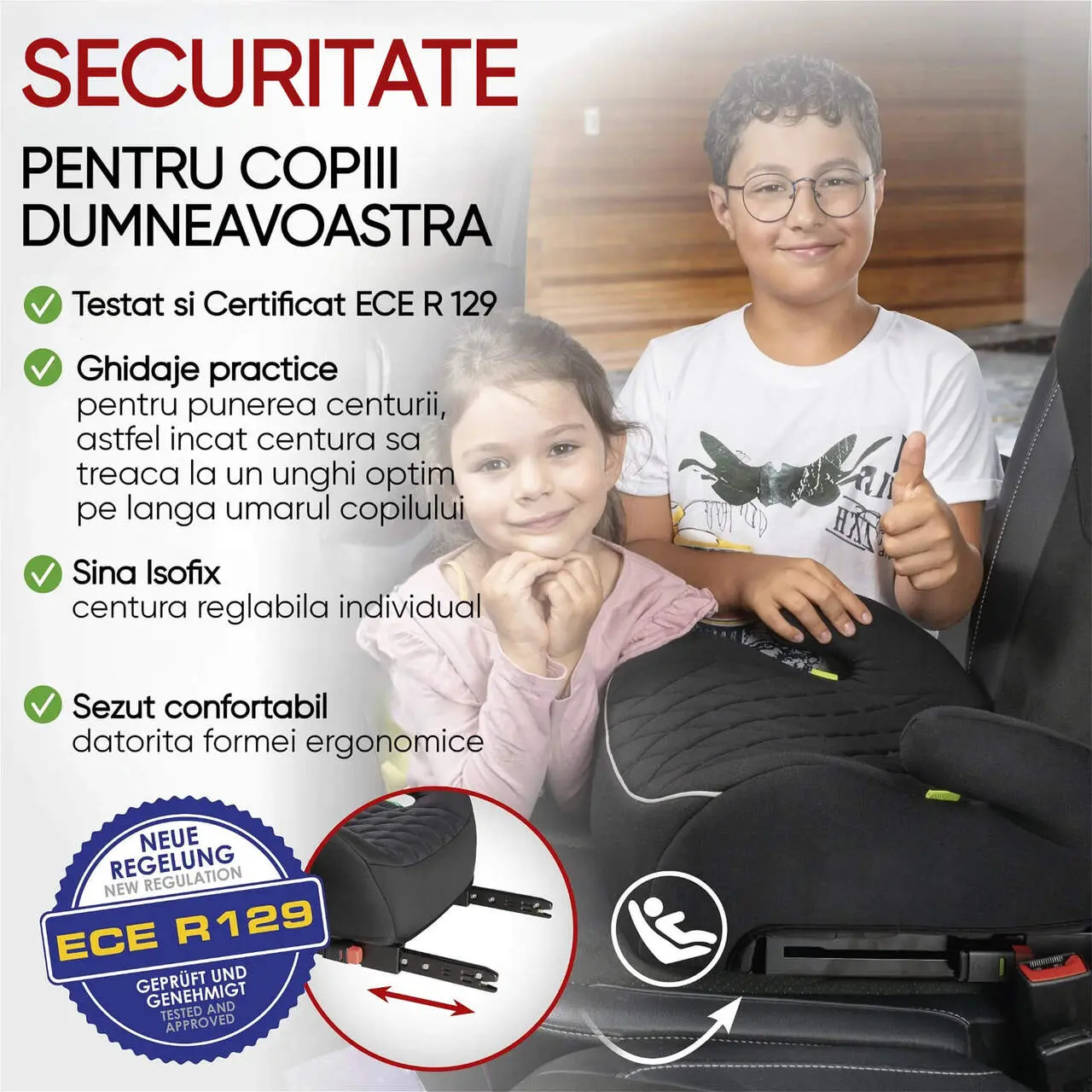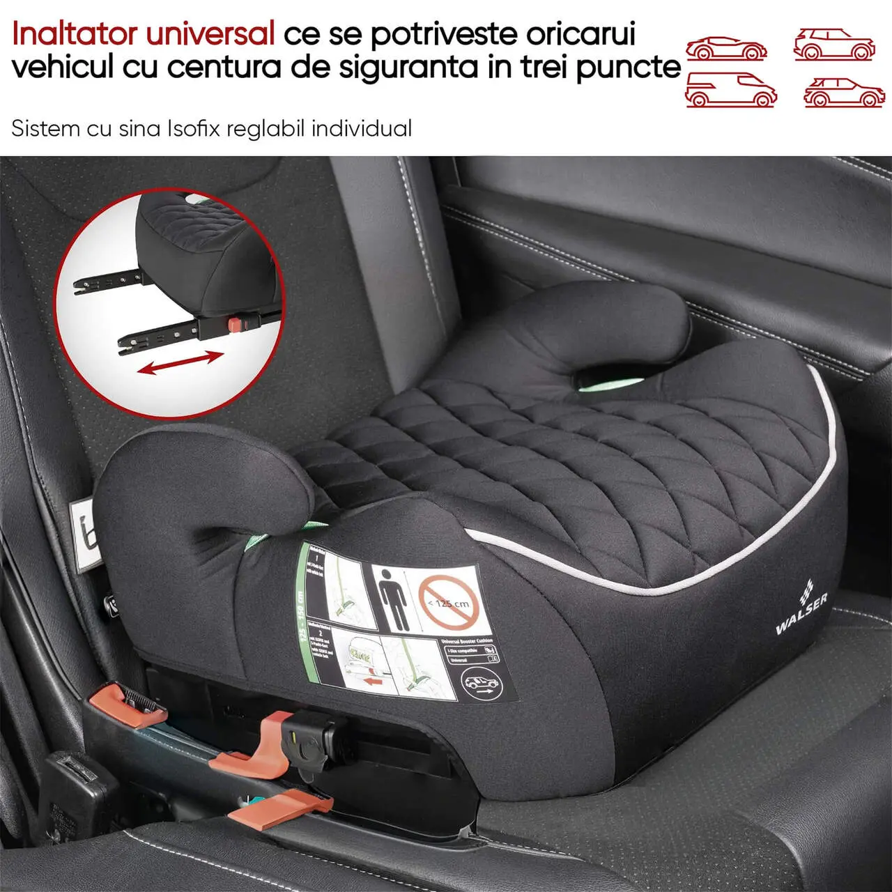 Inaltator auto pentru copii Andy cu ISOFIX Premium, Walser, testat si certificat ECE R 129, i-Size, 6-12 ani, 125-150 cm, 22-36 kg, scaun inaltator universal, negru