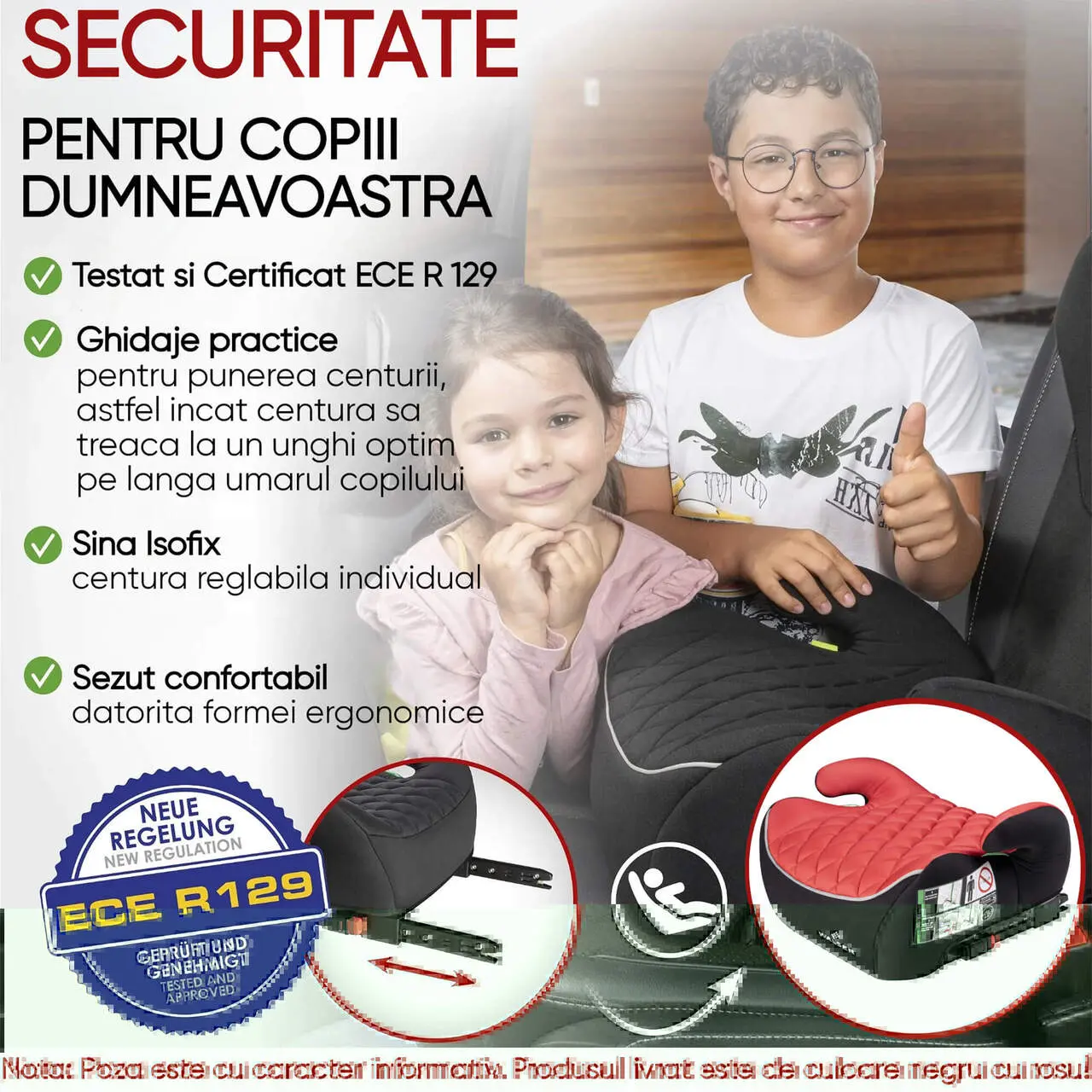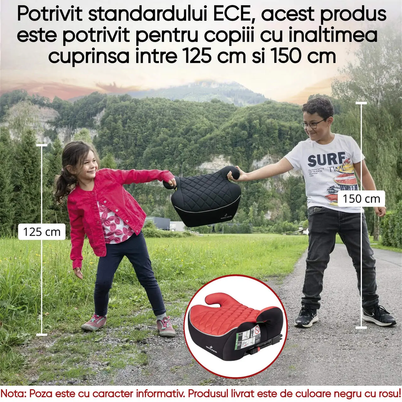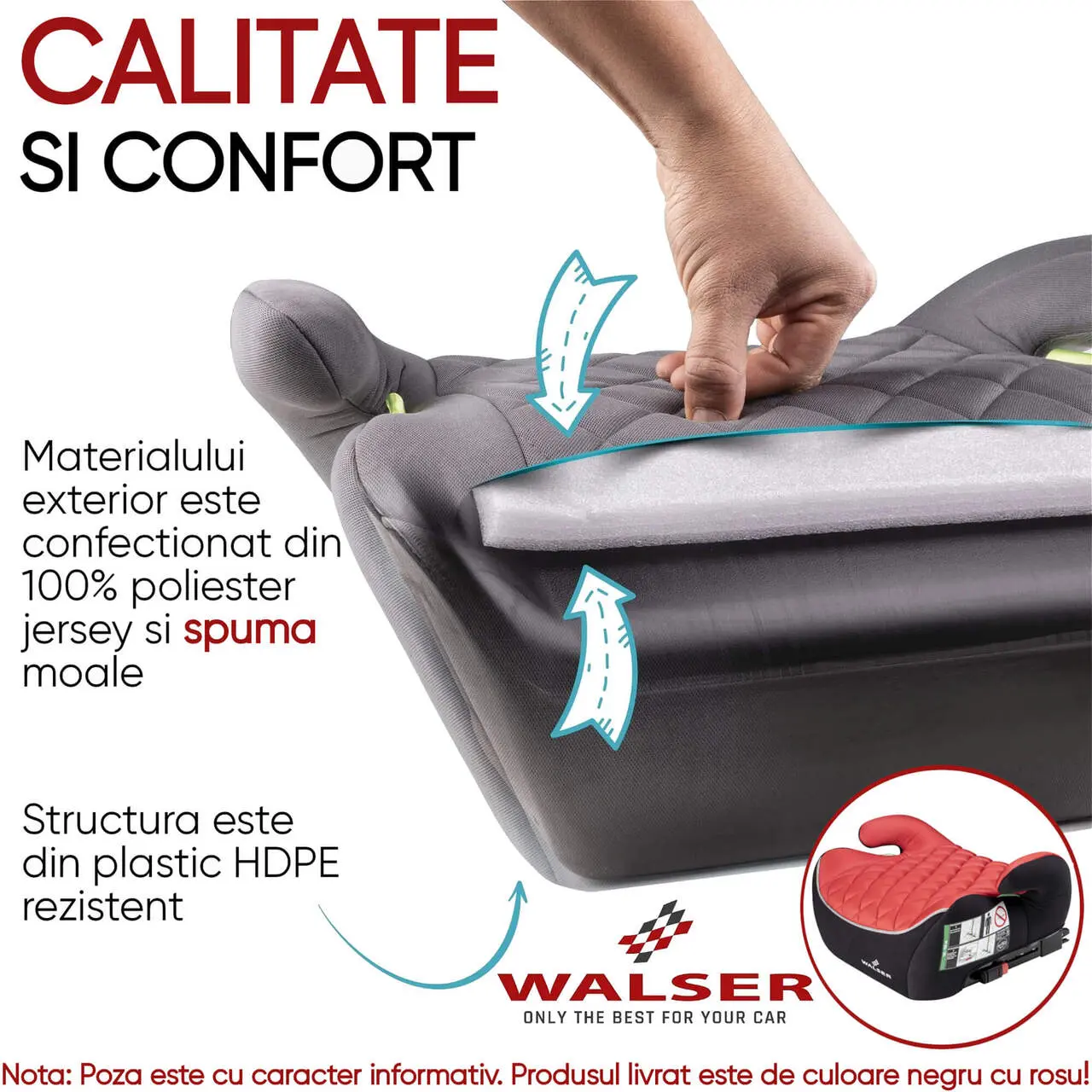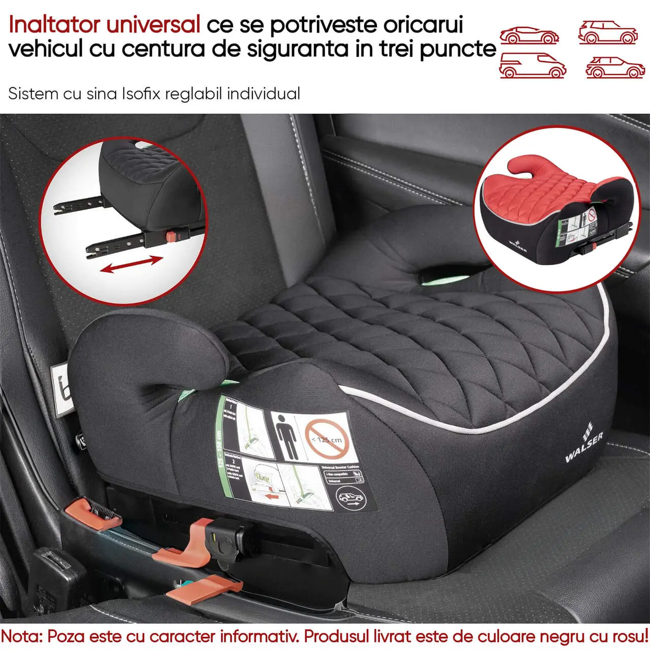 Inaltator auto pentru copii Andy cu ISOFIX Premium, Walser, testat si certificat ECE R 129, i-Size, 6-12 ani, 125-150 cm, 22-36 kg, scaun inaltator universal, negru cu rosu