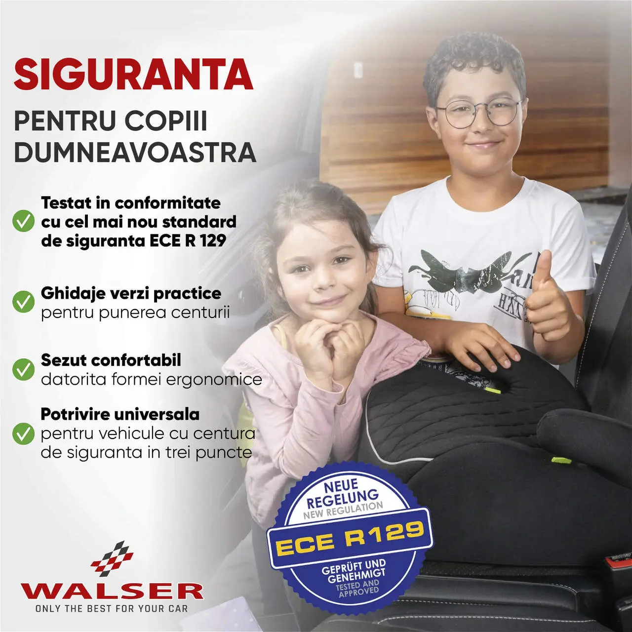 - Testat in conformitate cu cel mai recent standard ECE R 129