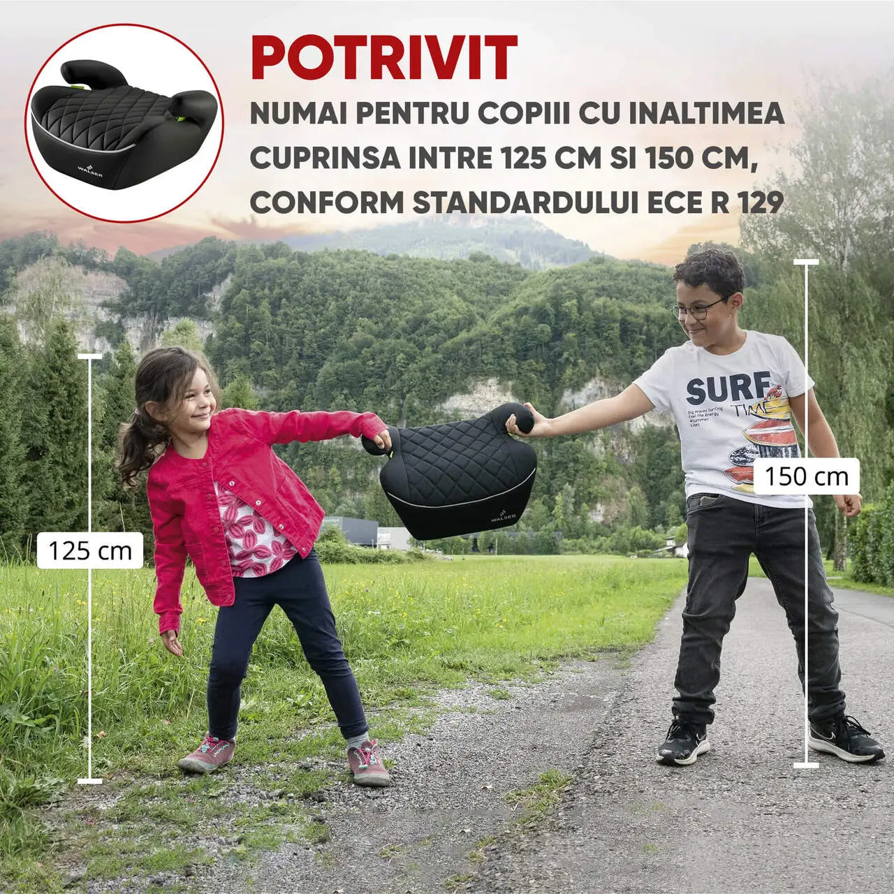Certificat ECE R 129: Conform celor mai recente reglementari europene, acest inaltator este potrivit pentru copii cu inaltimea de 125-150 cm, oferind siguranta optima si confort.