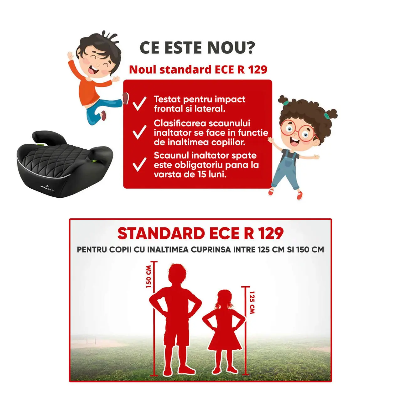 - Scaunele inaltatoare sunt acum clasificate in functie de inaltimea copilului, si nu de greutatea acestuia.