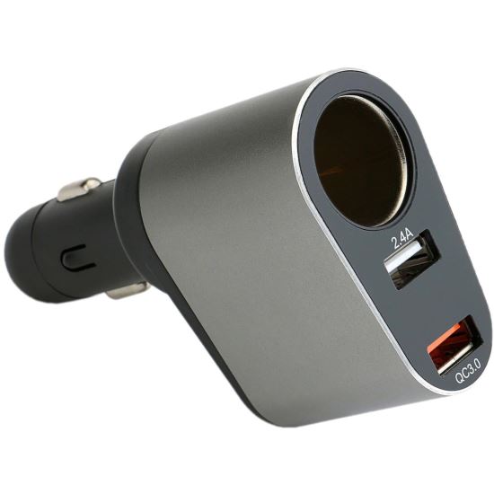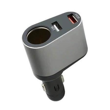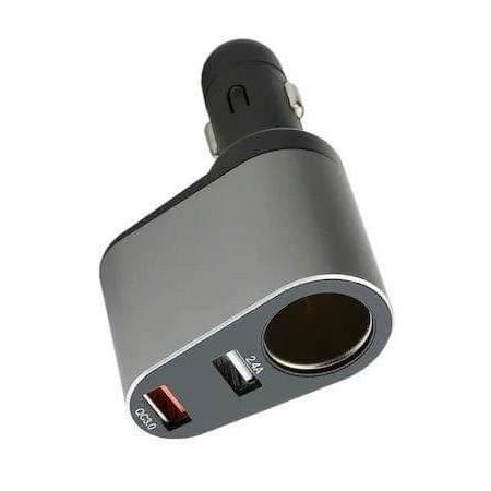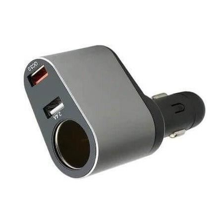 Incarcator auto cu incarcare rapida, 2 usb si o priza 12V, negru-argintiu