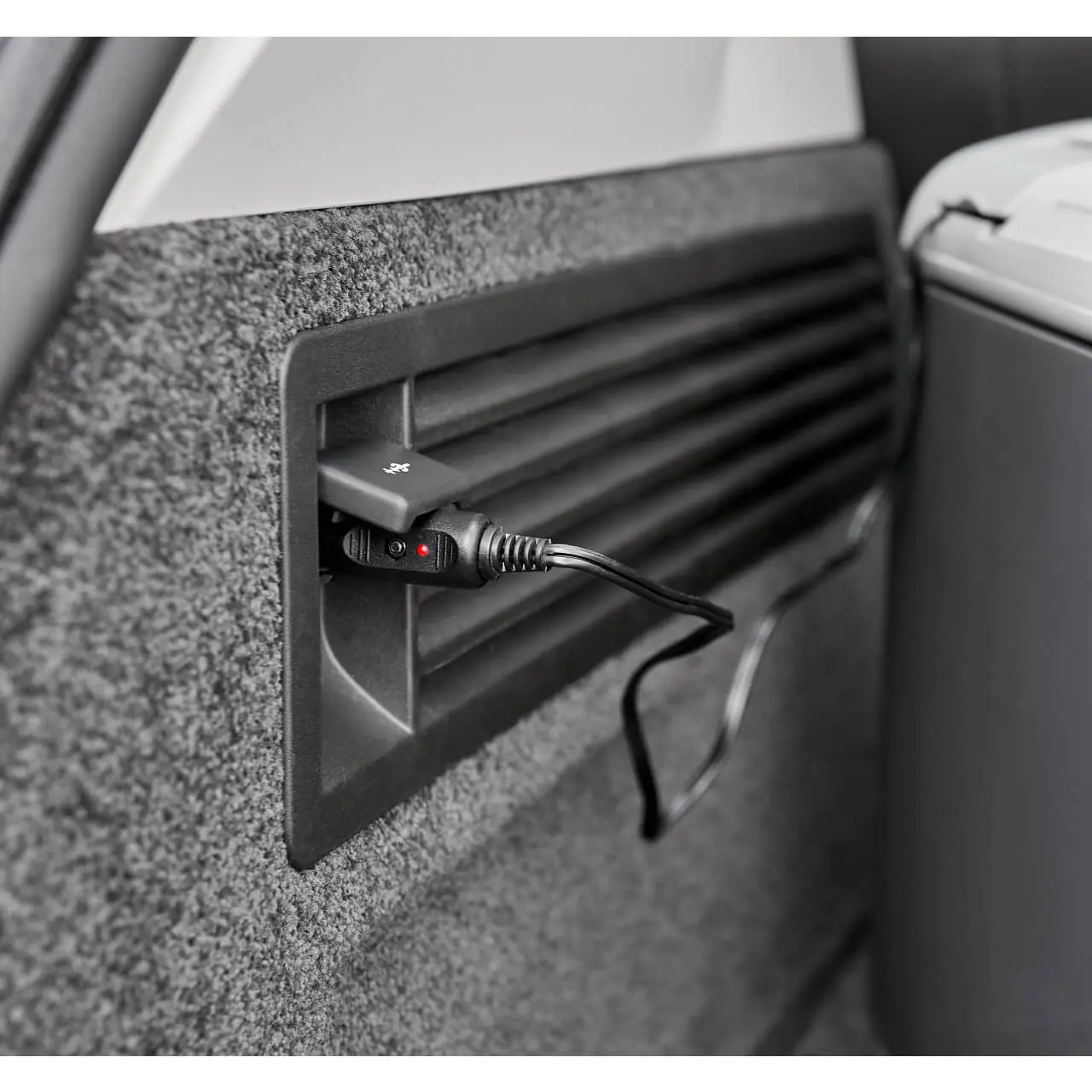 - Alimentarea se face direct de la masina (12 V) sau de la o priza de 230V. Lada frigorifica are incluse atat un cablul de alimentare 12V de 2m cat si un cablul de alimentare 230V de 1.25 m.
