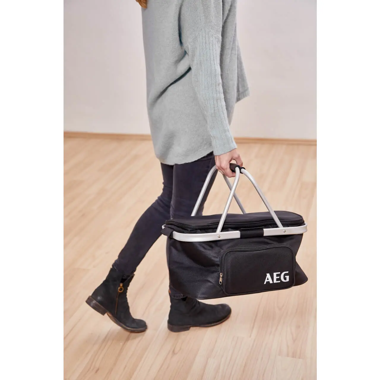 Lada frigorifica portabila tip cos termic pentru picnic, cumparaturi, auto AEG KS26, 12V, pliabila, functie de racire, capacitate 26L, manere de transport 30 x 25 x 35 cm