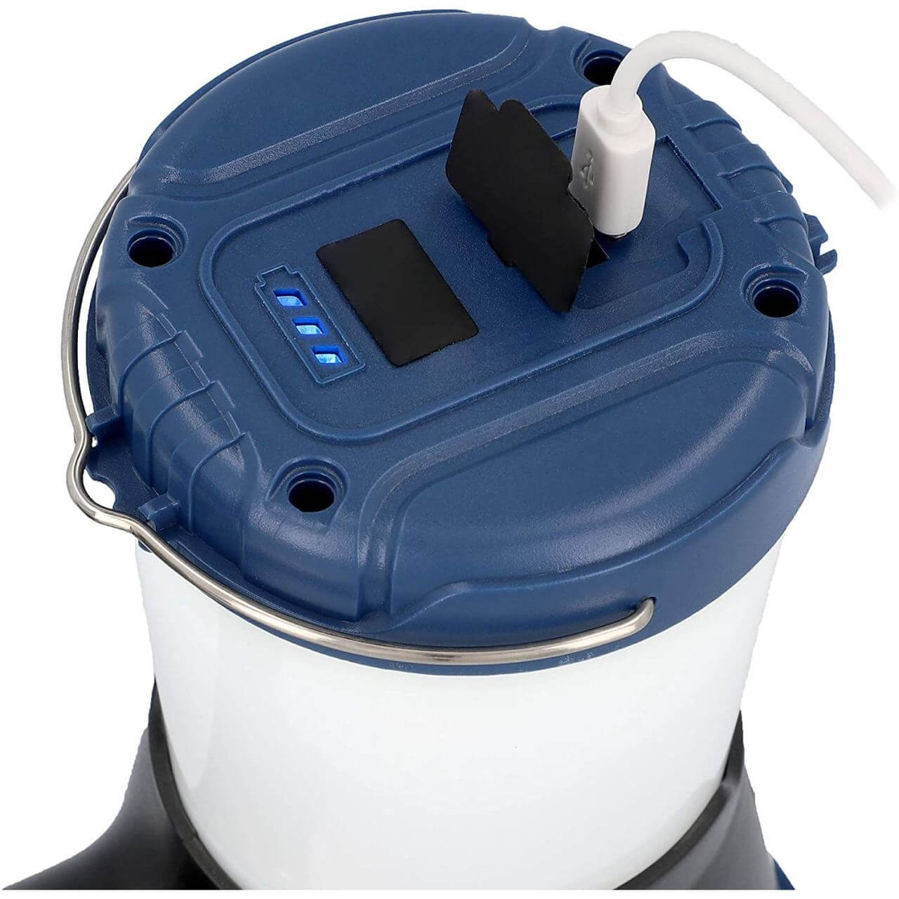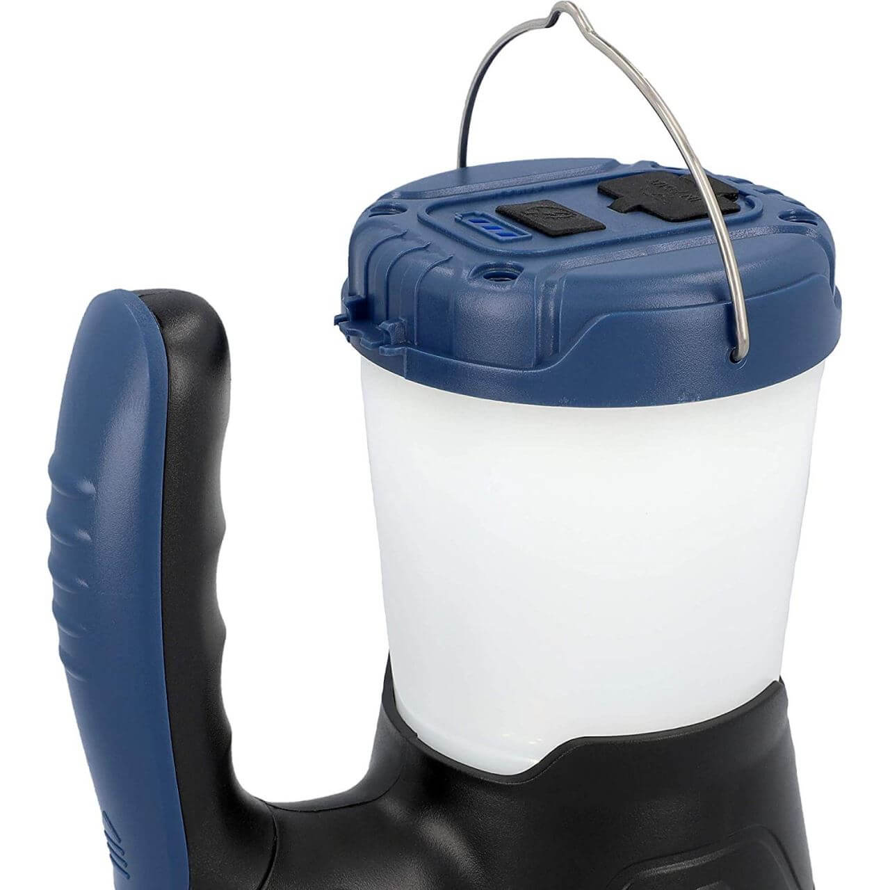 - LED de 5 W cu 2 nivele de luminozitate, 300 lumeni si 350 lumeni, si un comutator dublu pentru a porni lumina de camping si lumina rosie intermitenta de avertizare.