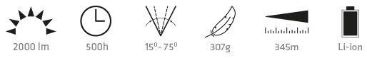 Corpul lanternei este realizat din aluminiu de înaltă rezistență și inspiră calitate și măiestrie supremă. Q7xrs este cea mai puternică lanternă Suprabeam până în prezent, oferind un număr uimitor de 2000 de lumeni și, datorită tehnologiei optimizate, durata de funcționare este cu 50% mai lungă decât alte lanterne cu LED-uri normale. Nu numai că Q7xrs oferă 2000 de lumeni maxim și un timp de funcționare cu 50% mai lung, dar este ideală și pentru o uimitoare putere de lumină constantă de 1000 de lumeni utilizând întreaga structură a lanternei pentru distribuirea căldurii.