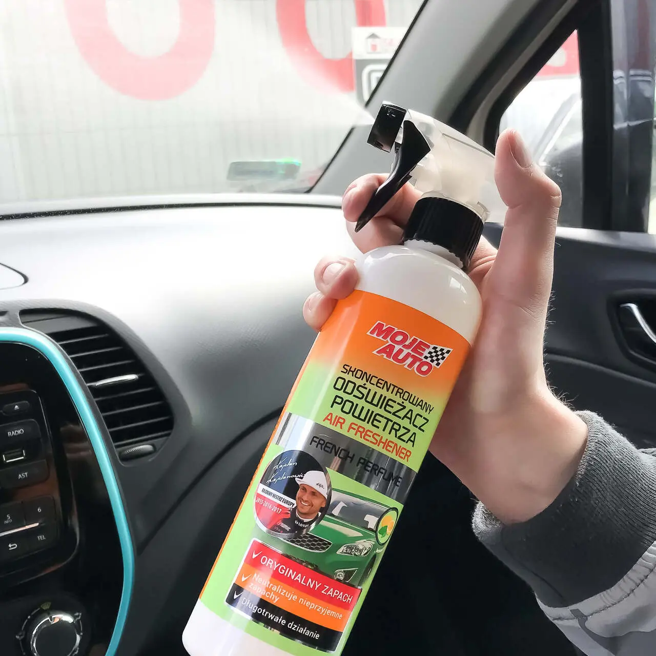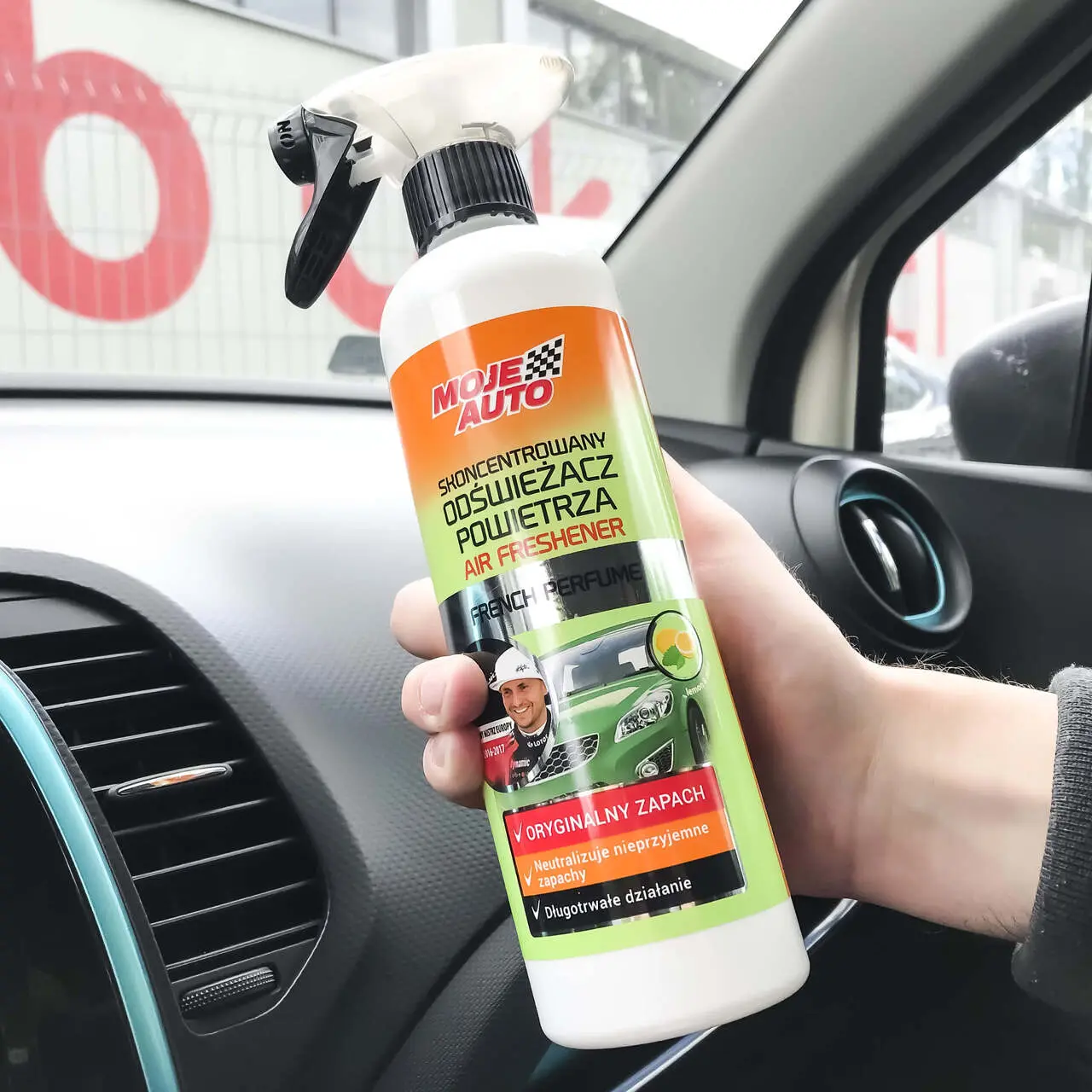 Improspateaza interiorul masinii tale cu odorizantul spray concentrat Moje Auto, cu parfum energizant de lamaie si menta. Formula sa concentrata asigura o aroma intensa si de lunga durata, ideala pentru a mentine aerul proaspat in fiecare calatorie. Cantitatea de 500 ml este perfecta pentru utilizare frecventa.