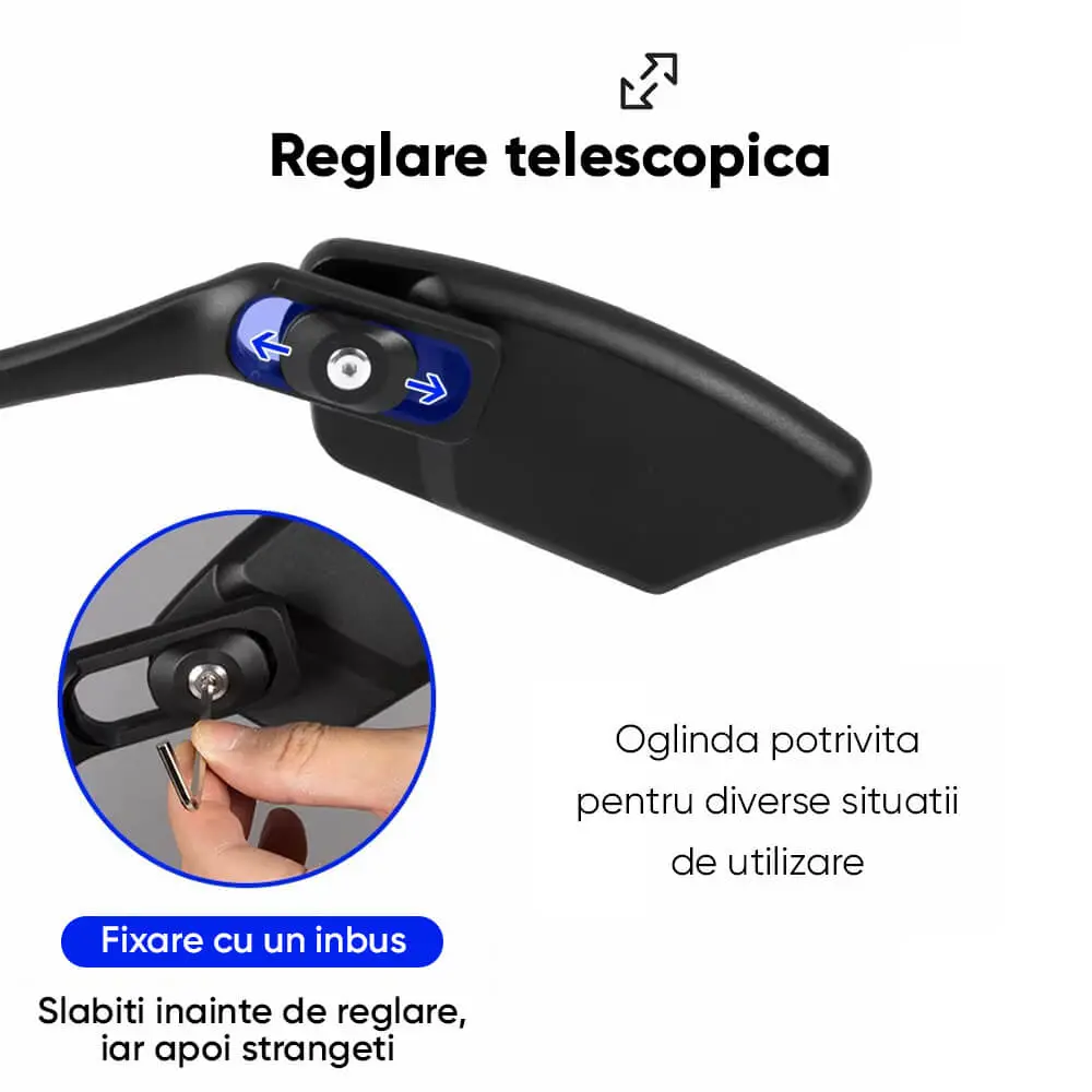 Oglinda bicicleta, MTB, BMX, scuter, motocicleta, HD, reglabila 360 grade, ajustabila, vizibilitate unghi larg, stanga