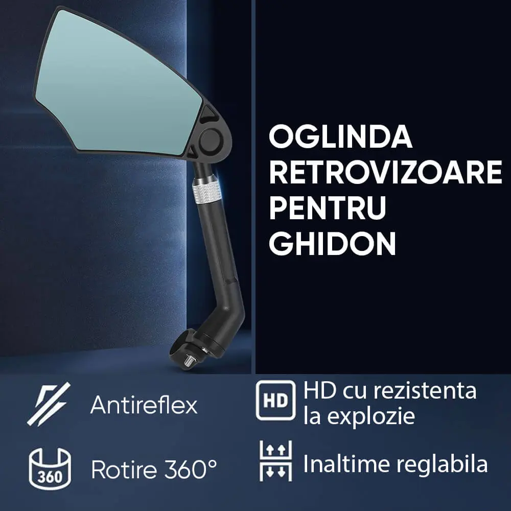 - Oglinda retrovizoare poate fi reglata la 360 de grade, ceea ce o face flexibila pentru diferite unghiuri de vizualizare.
