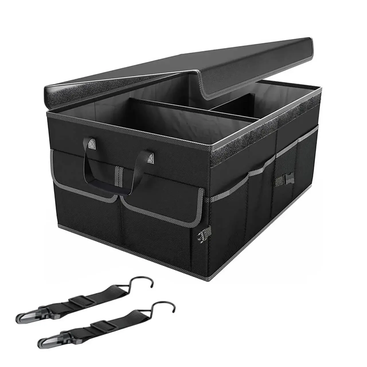 - Datorita compartimentelor si buzunarelor de marimi diferite, este ideal pentru depozitarea si transportarea in siguranta a obiectelor de marimi diferite, cum ar fi produsele de ingrijire si curatenie auto, unelte, cumparaturi sau diverse accesorii pentru masina.
