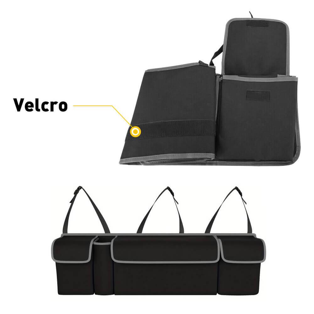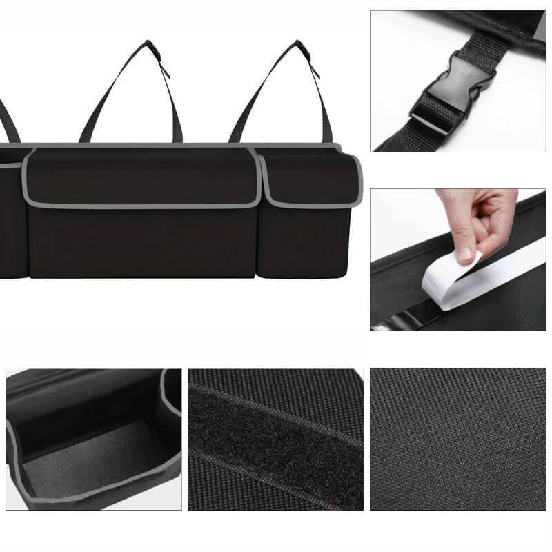 - Datorita buzunarelor de marimi diferite, este ideal pentru depozitarea si transportarea in siguranta a obiectelor de marimi diferite cum ar fi produsele de ingrijire si curatenie auto, unelte, cumparaturi sau diverse accesorii pentru masina.