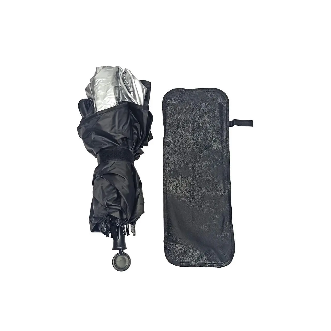 Parasolar auto pentru parbriz retractabil 143 x 86 cm, tip umbrela, pliabil, protectie ridicata UV, poliester premium 210T, maner flexibil cu rotire 360 de grade, husa depozitare, Roll Fast, argintiu + negru