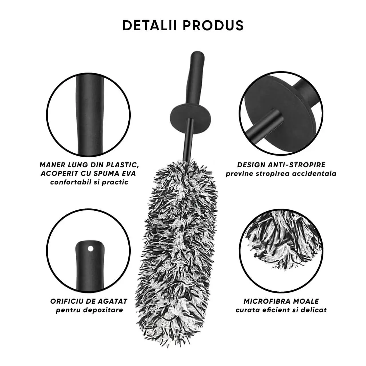 - Lungime perie microfibre: 22 cm