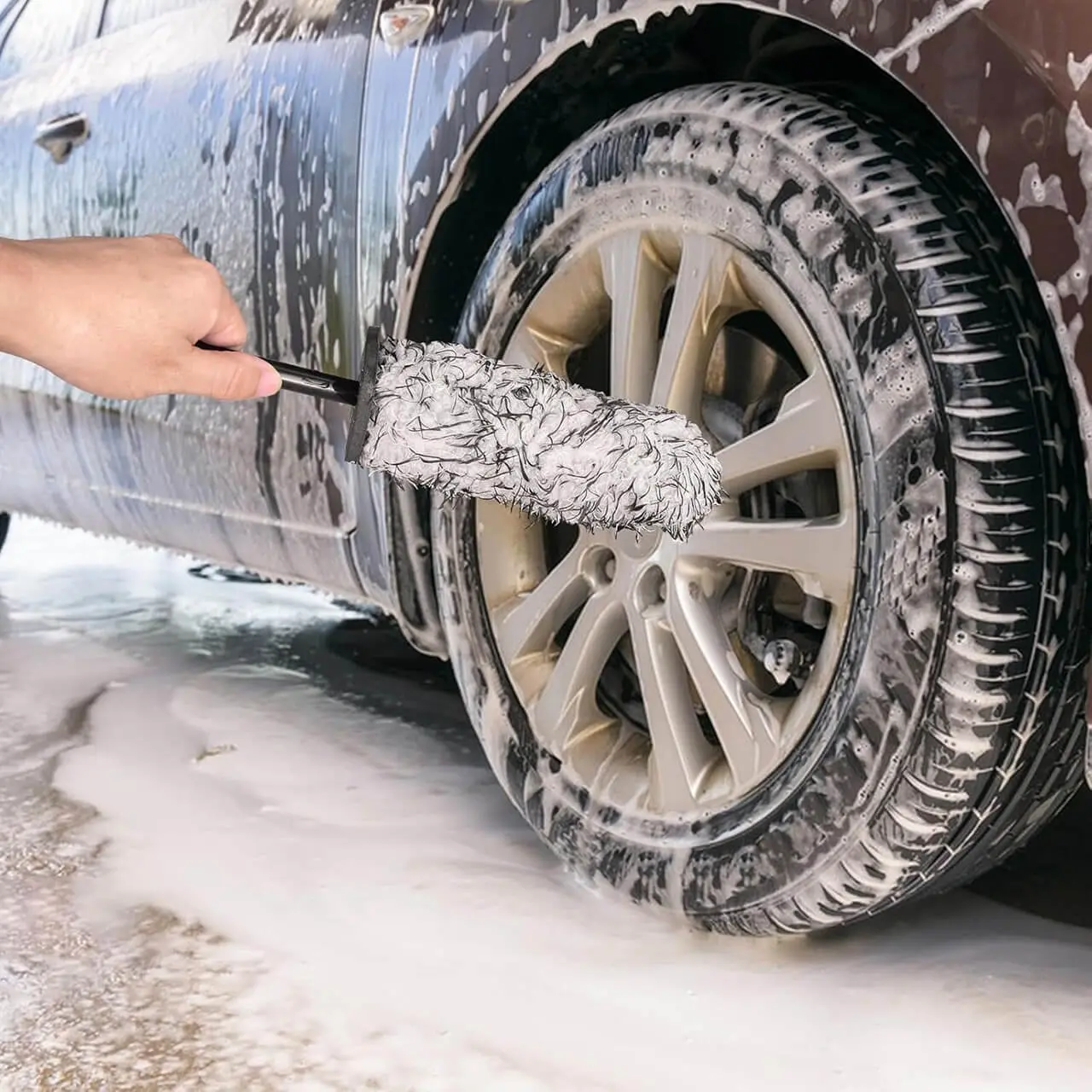 - Foloseste jetul de apa de la statia self-wash pentru a indeparta murdaria grosiera de pe jante.
