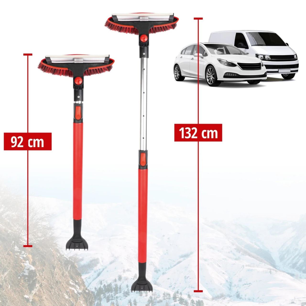 Perie zapada si racleta gheata cu maner telescopic, rotativ 270°, Walser, 92 - 132 cm, rosu-negru