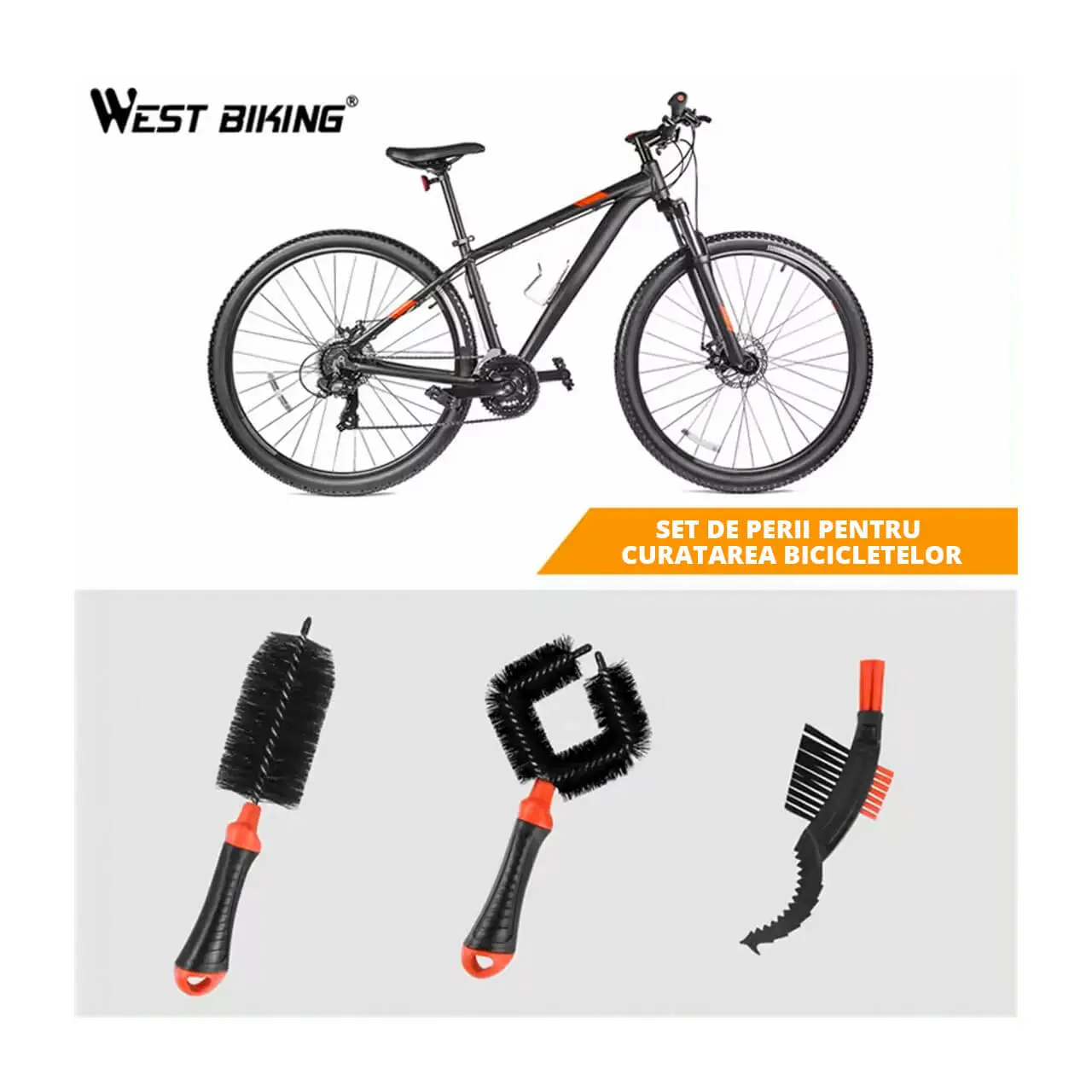 Perii pentru curatare bicicleta, janta, lant, sistem frana, West Biking, set 3 perii