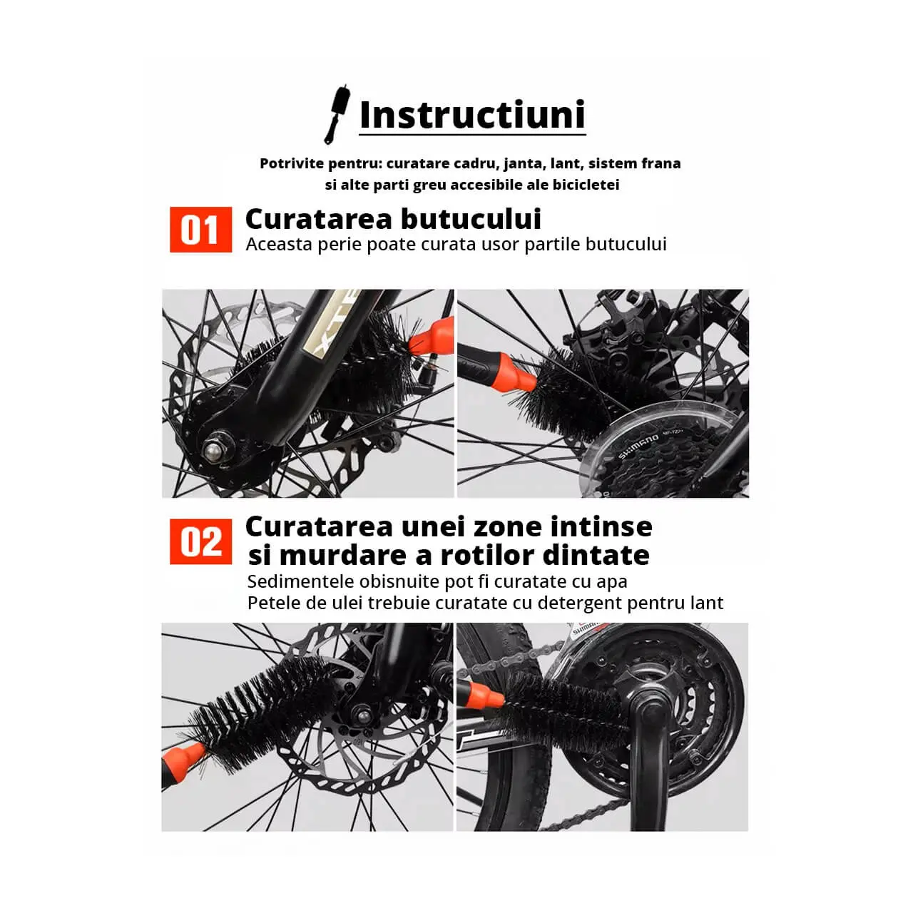 - Setul de perii este un accesoriu util, ideal pentru ingrijirea bicicletei dvs.