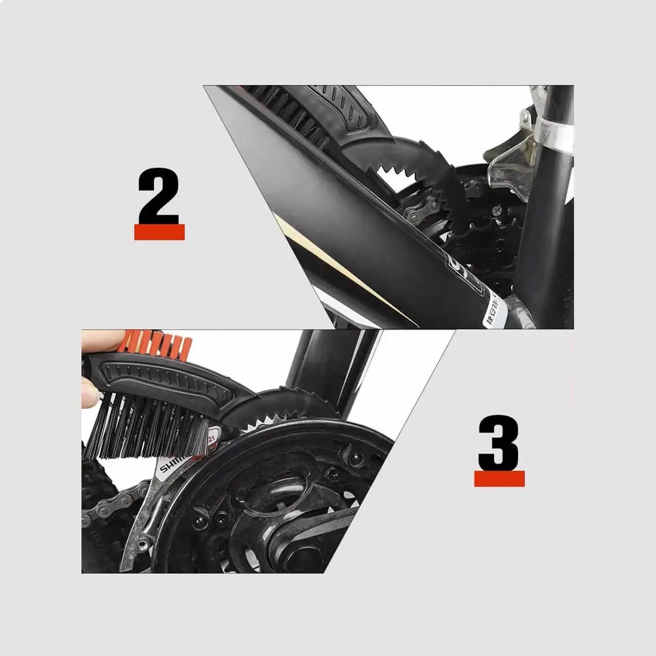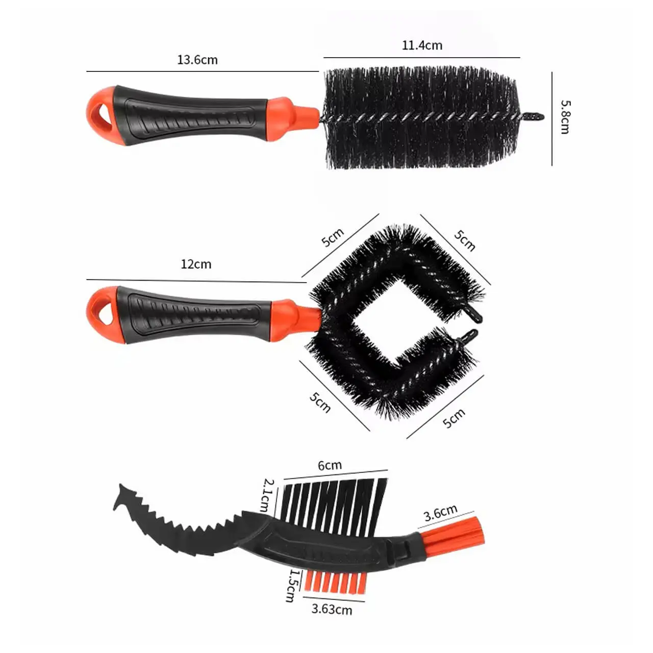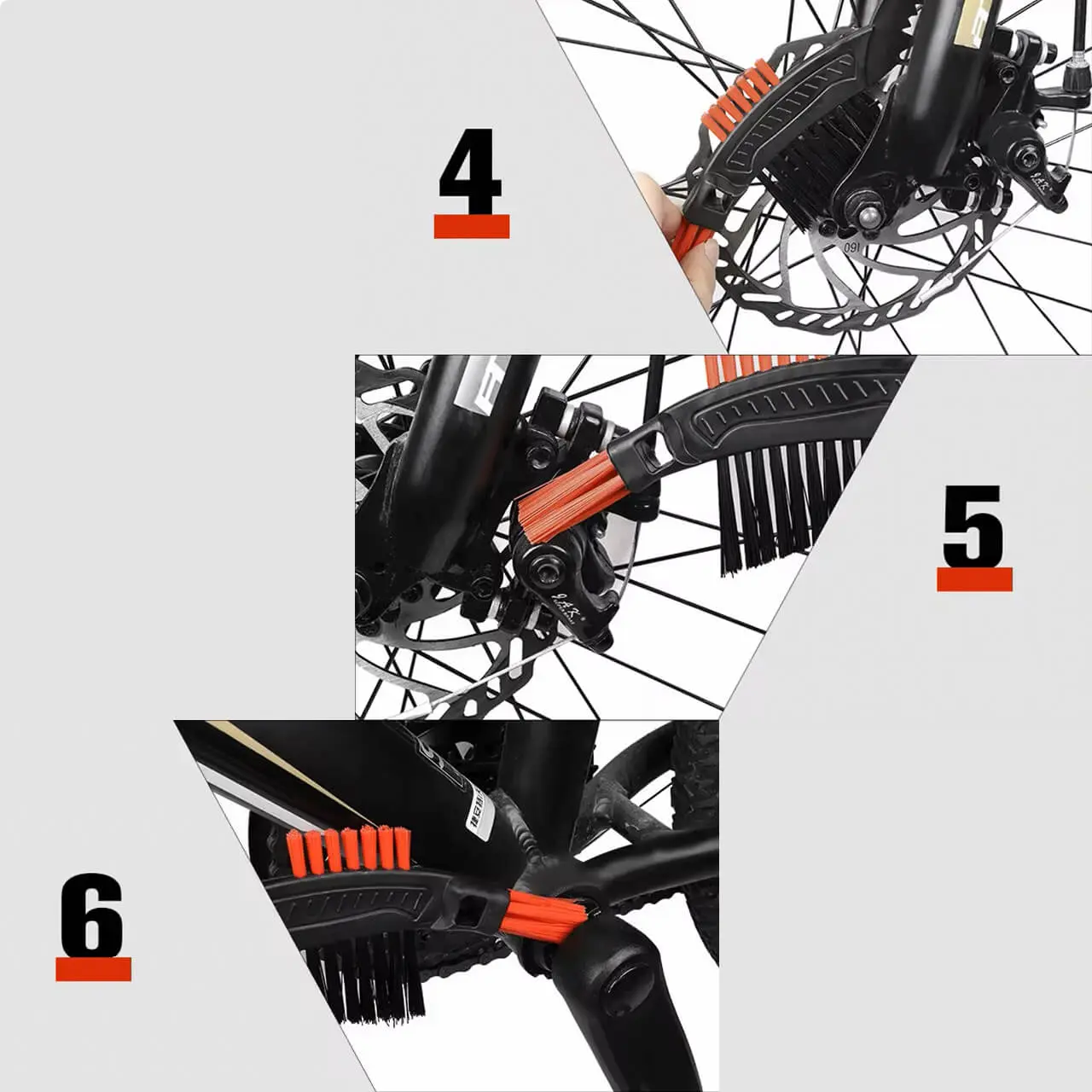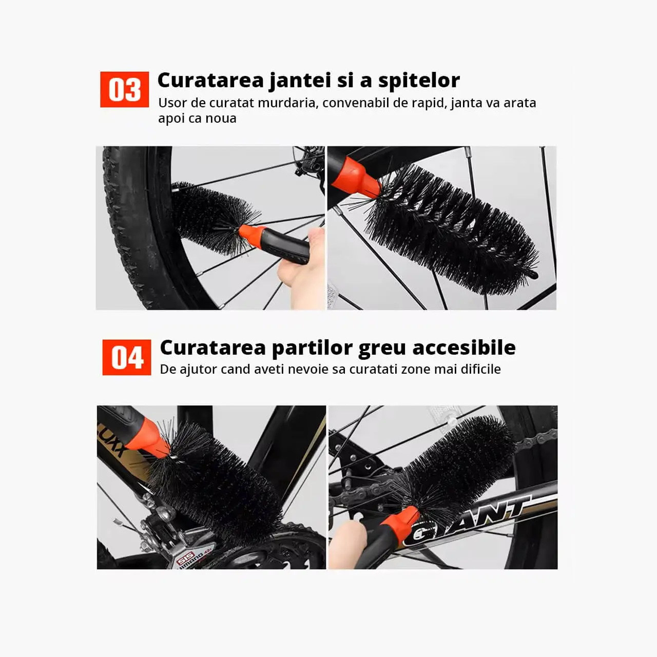 Fiecare perie este special conceputa pentru o anumita parte a bicicletei, asigurand o curatare eficienta si precisa..