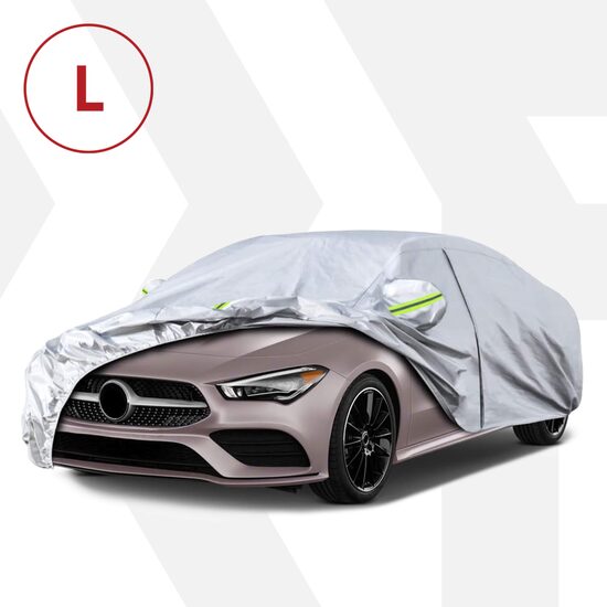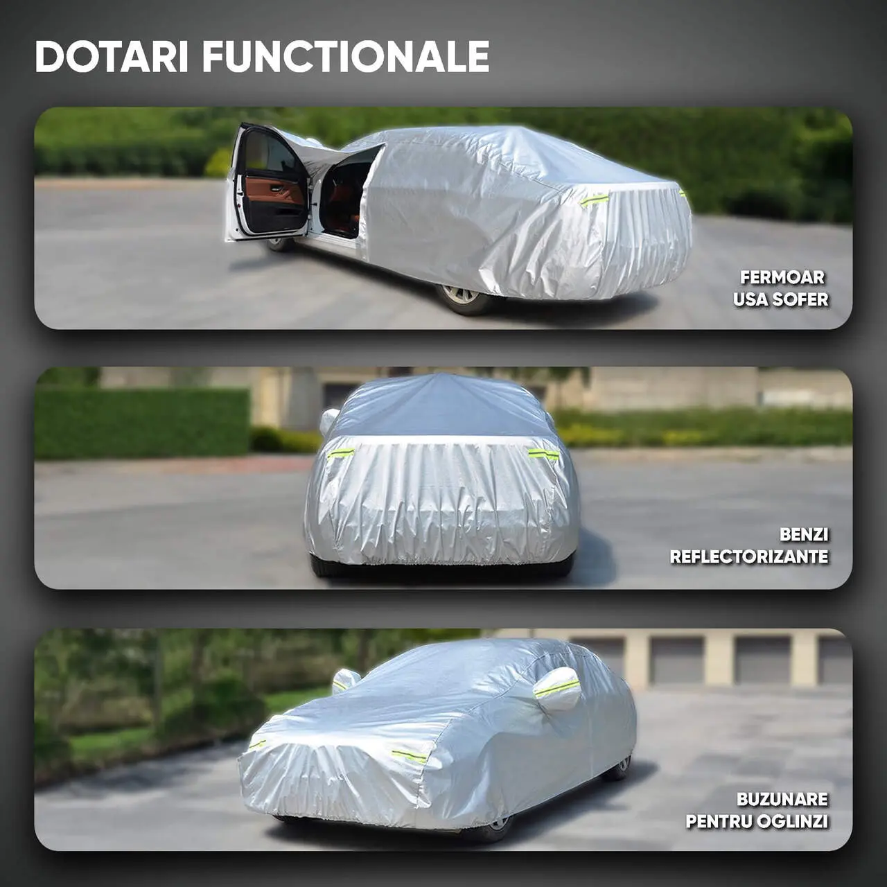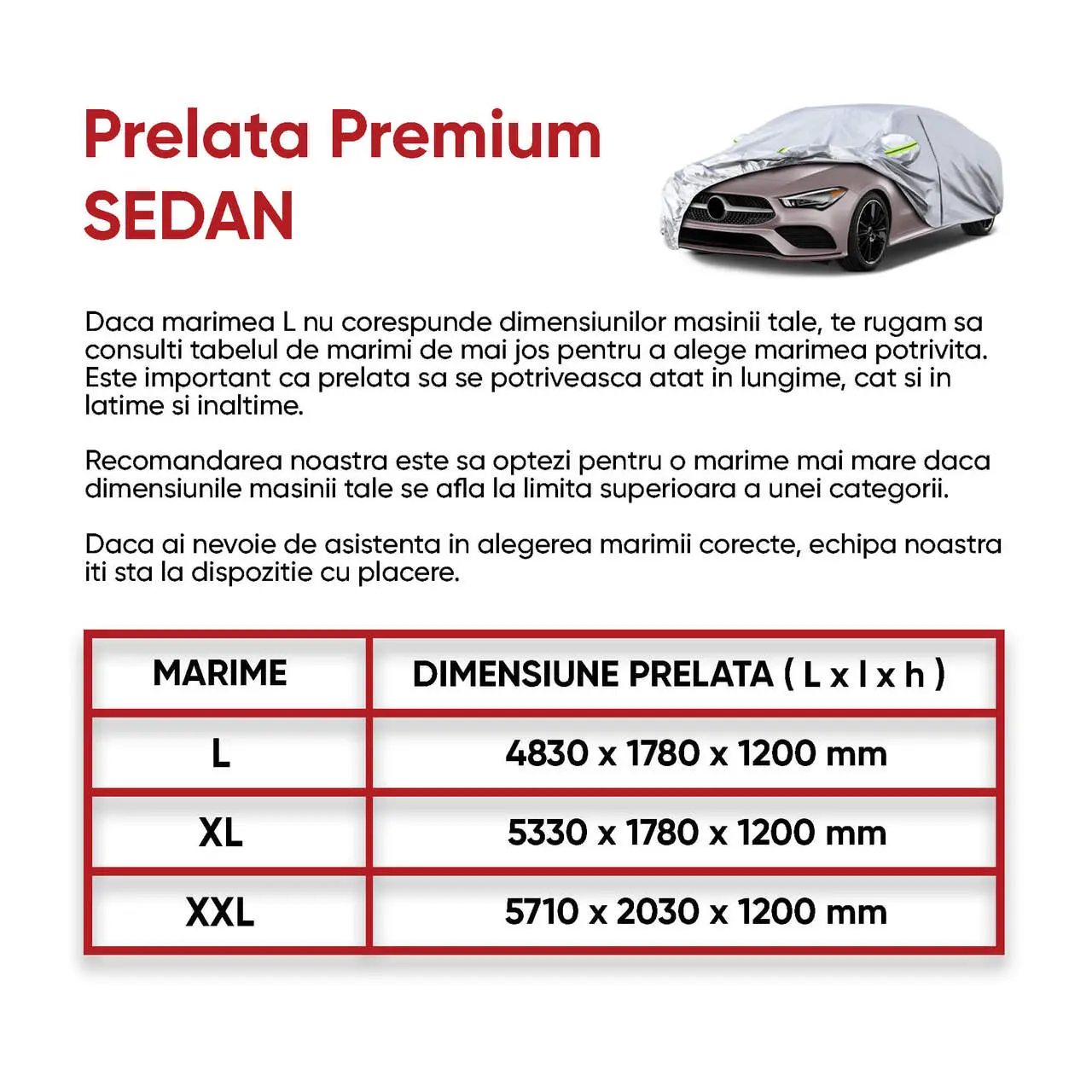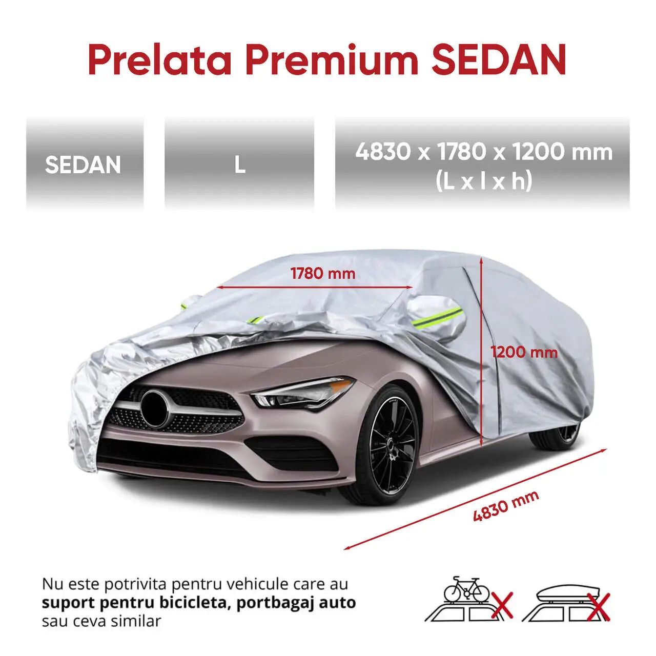 Prelata auto Premium L, PEVA impermeabil, aluminiu pentru protectie UV, captuseala bumbac, 4830 x 1780 x 1200 mm, fermoar usa sofer, gri, Roll Fast
