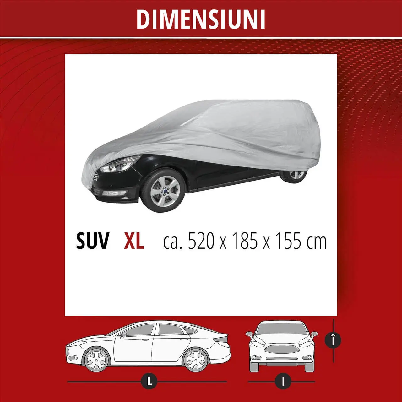 - Dimensiuni prelata: marimea XL aprox. 520 x 185 x 155 cm