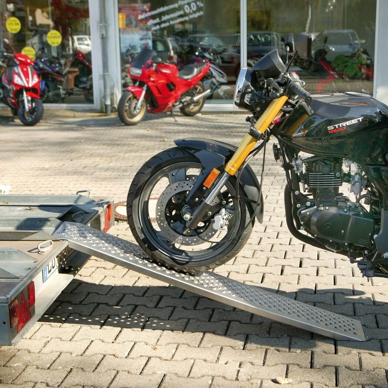 Rampa din aluminiu compusa din 2 bucati este ideala pentru incarcarea in siguranta a motocicletelor.