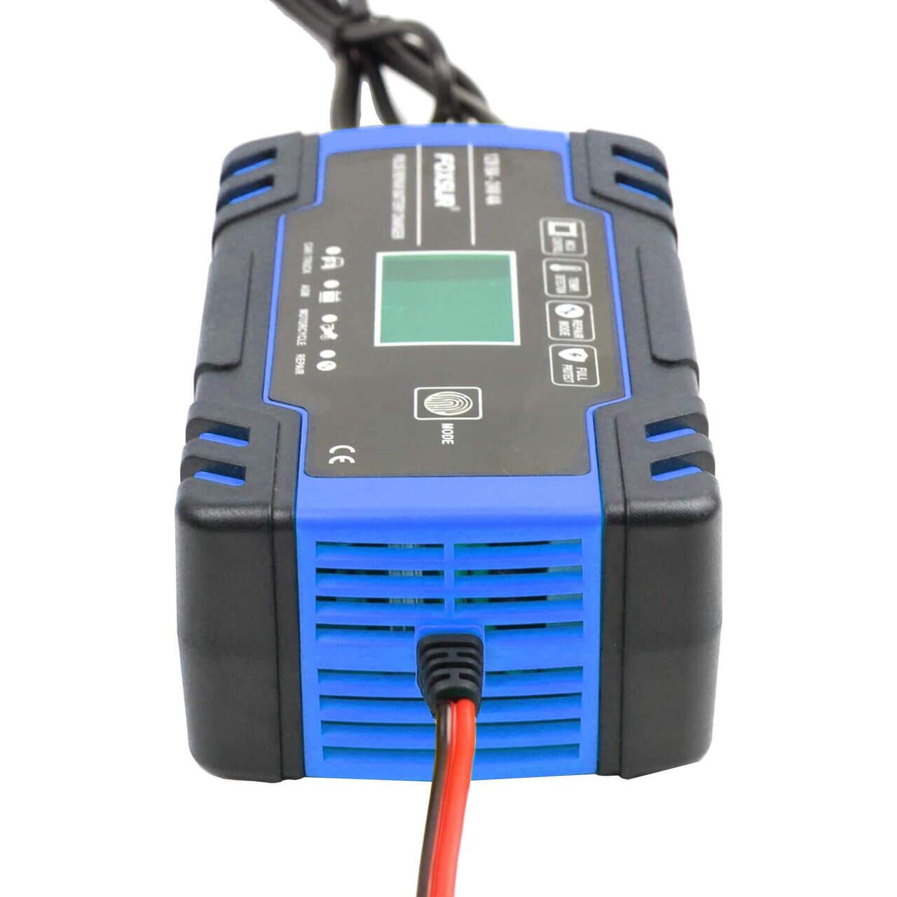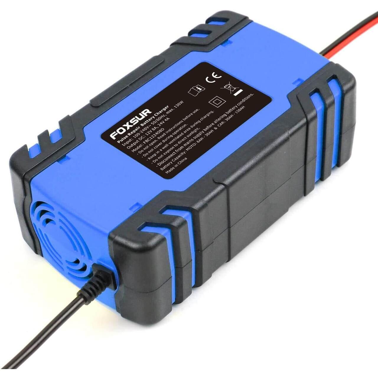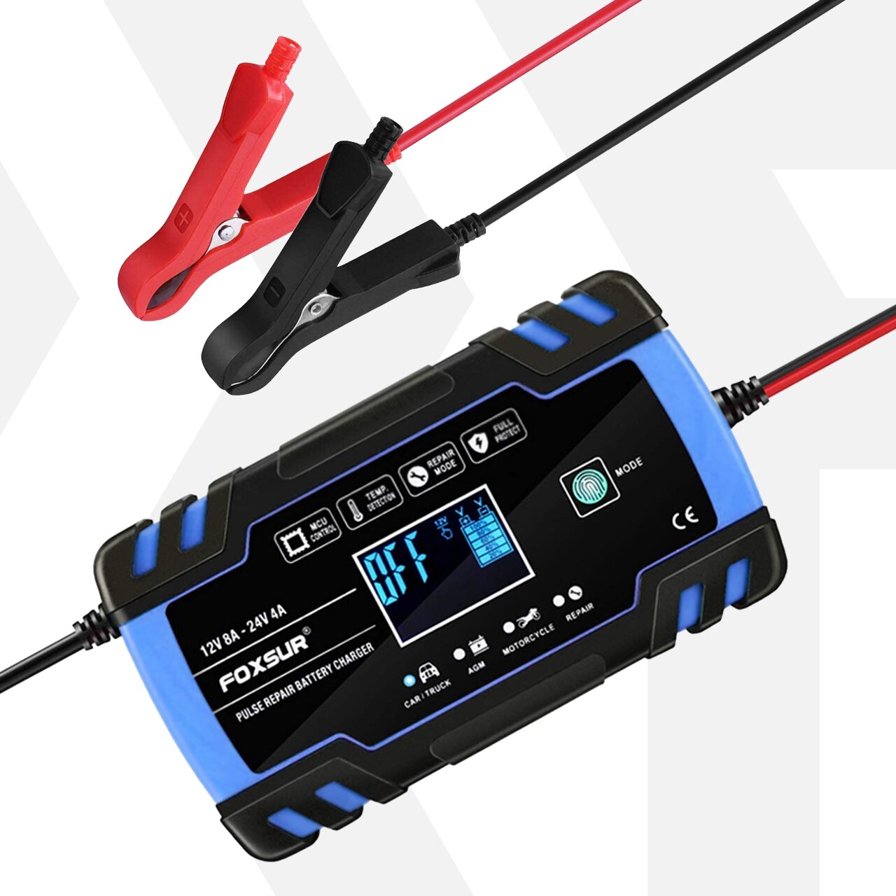 Redresor auto digital, incarcare baterii cu afisaj LCD, auto, moto, camion, Foxsur, 12V/8A, 24V/4A, 6Ah-150Ah, functie de reparare acumulator prin impulsuri, albastru cu negru