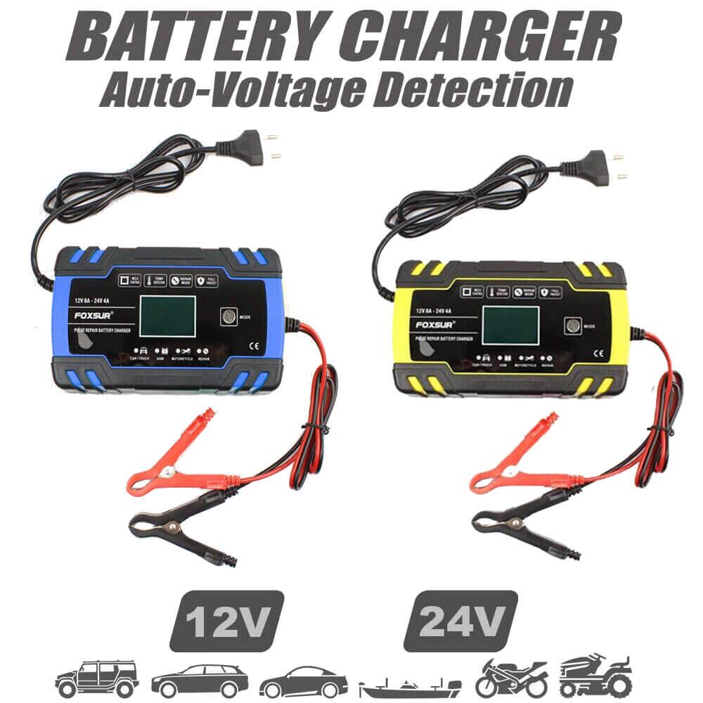 Redresorul digital pentru baterii auto, moto si camion de la Foxsur poate fi folosit pentru a incarca diverse tipuri de baterii (AGM, GEL, EFB, SLA si Wet) de 12V (6Ah-150Ah) si 24V (6Ah - 100Ah).