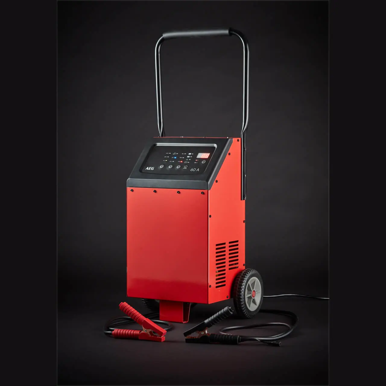 Cumpara robot pornire auto professional 540 A, inteligent in 9 etape cu redresor 60 A, AEG, pentru baterii 12 V si 24 V, 1000 Ah de pe Roll Fast. Robotul pornire auto este potrivit pentru baterii WET, MF, GEL, EFB, AGM. De asemenea, robotul vine cu roti de transport si este perfect pentru atelier & service. Puteti alege intre doua culori pentru acest produs: rosu si negru.
